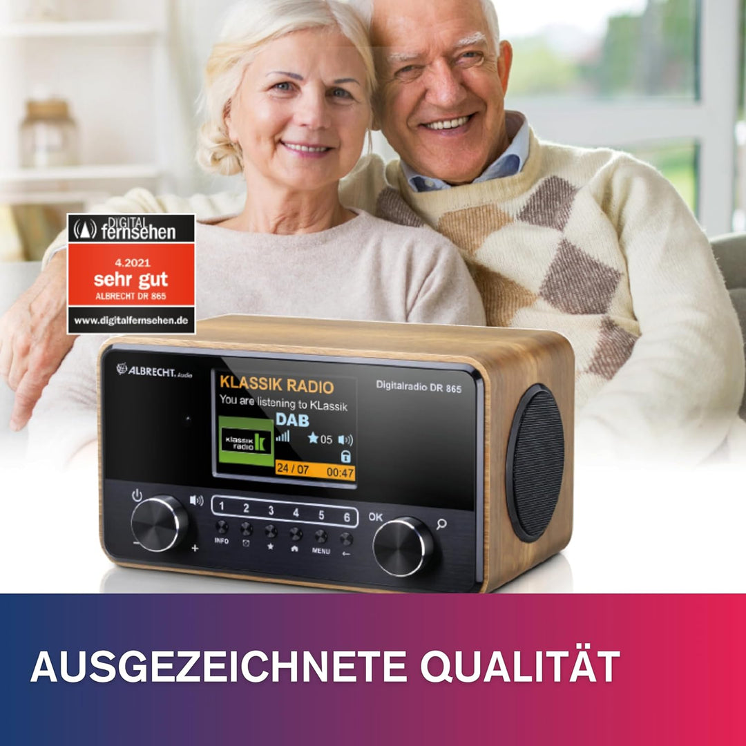- Das DAB+ und UKW-Radio DR 865 Senior von ALBRECHT Audio ist dank edler Optik im Retro Stil auch ein absoluter Hingucker! Das abgerundete, moderne Holzgehäuse des Digitalradios beeindruckt nicht nur optisch, sondern auch durch einen besonders