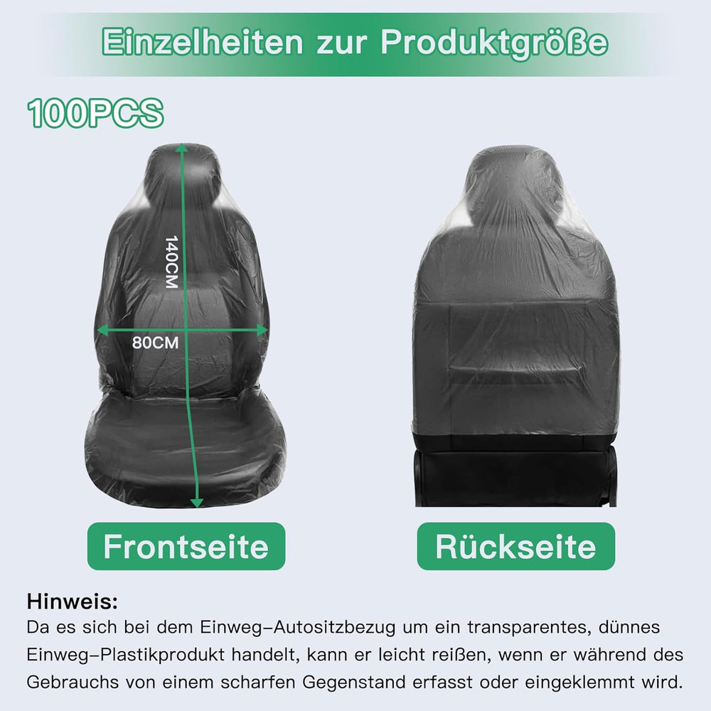 - Produktspezifikationen: 140 x 80 cm, ultradicke 20 g Einweg-Autositzbezüge aus Kunststoff; Dickeres Material, schwieriger zu reissen; Aufgrund der elektrostatischen Haftung ist es schwer zu rutschen (Hinweis: Aufgrund der Formanforderungen des Produkts