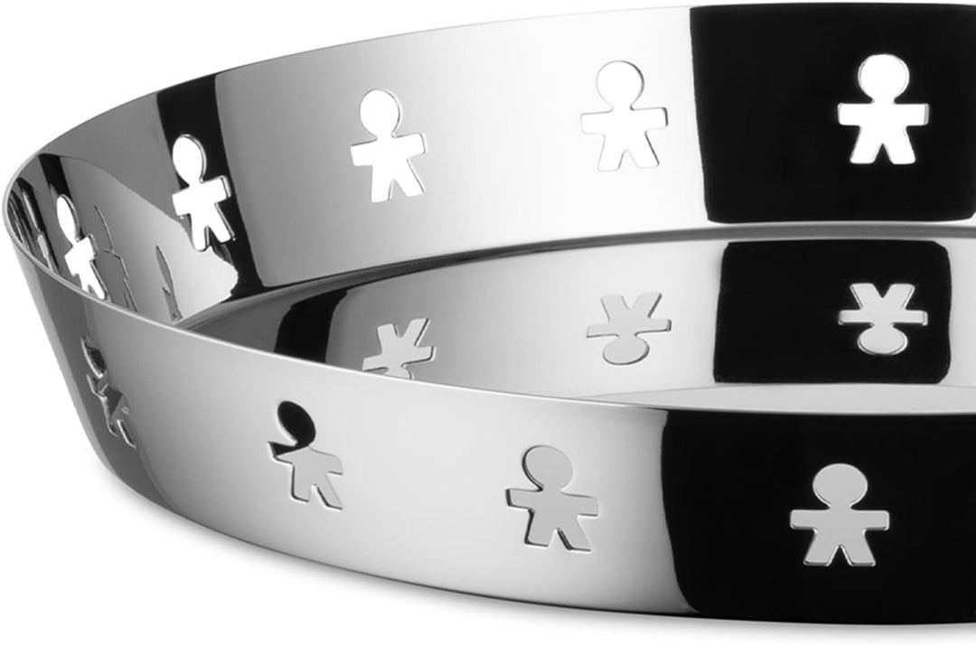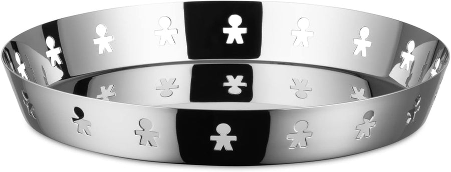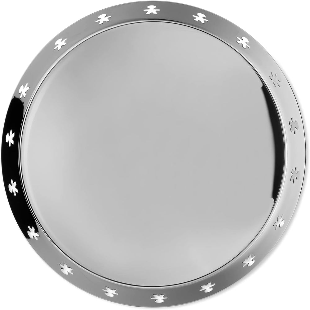 Alessi "Mini Girotondo", Tablett, rund mit durchbrochenem Rand aus Edelstahl 18/10 glänzend poliert,