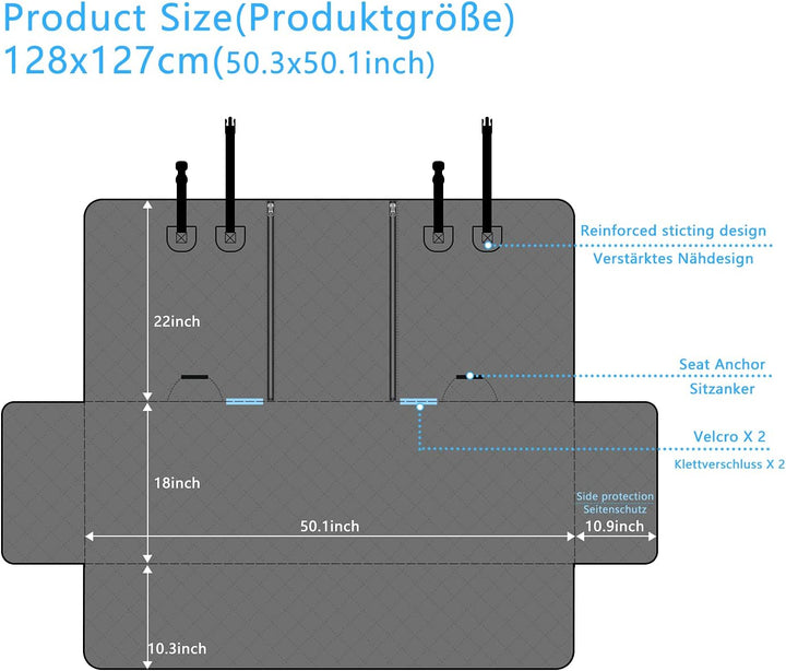 - ✅【Schondecke Auto Hund Rückbank 】 Alfheim Rücksitzschutz Grösse: 133 x 127 cm / 52,4 x 50 inch. Es kann perfekt mit den meisten SUV-Modellen, einschliesslich LKWs und SUVs, kombiniert werden und ist auch für jede Hundeart geeignet, unabhängig