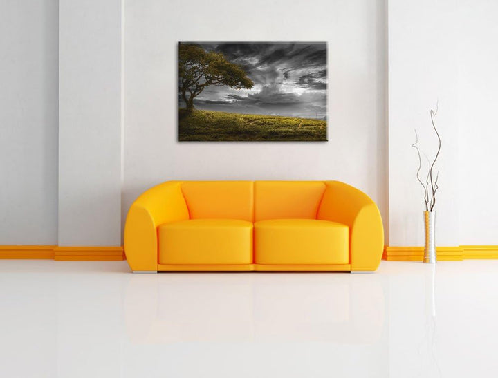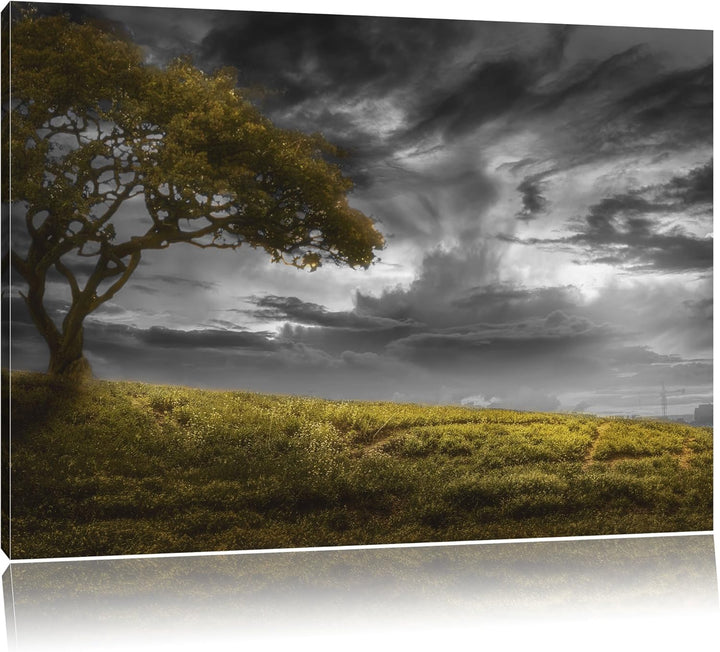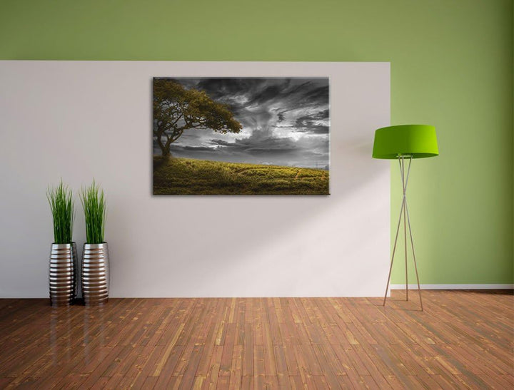 Alleinstehender Baum schwarz/weiss Format: 100x70 auf Leinwand, XXL riesige Bilder fertig gerahmt mi