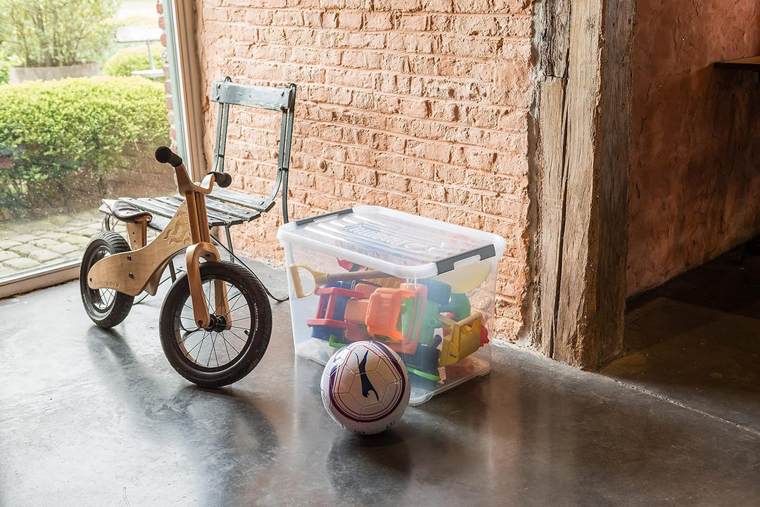 - Nette Aufbewahrungsbox aus robustem Kunststoff mit zwei vollständig schliessen Clips an den Seiten