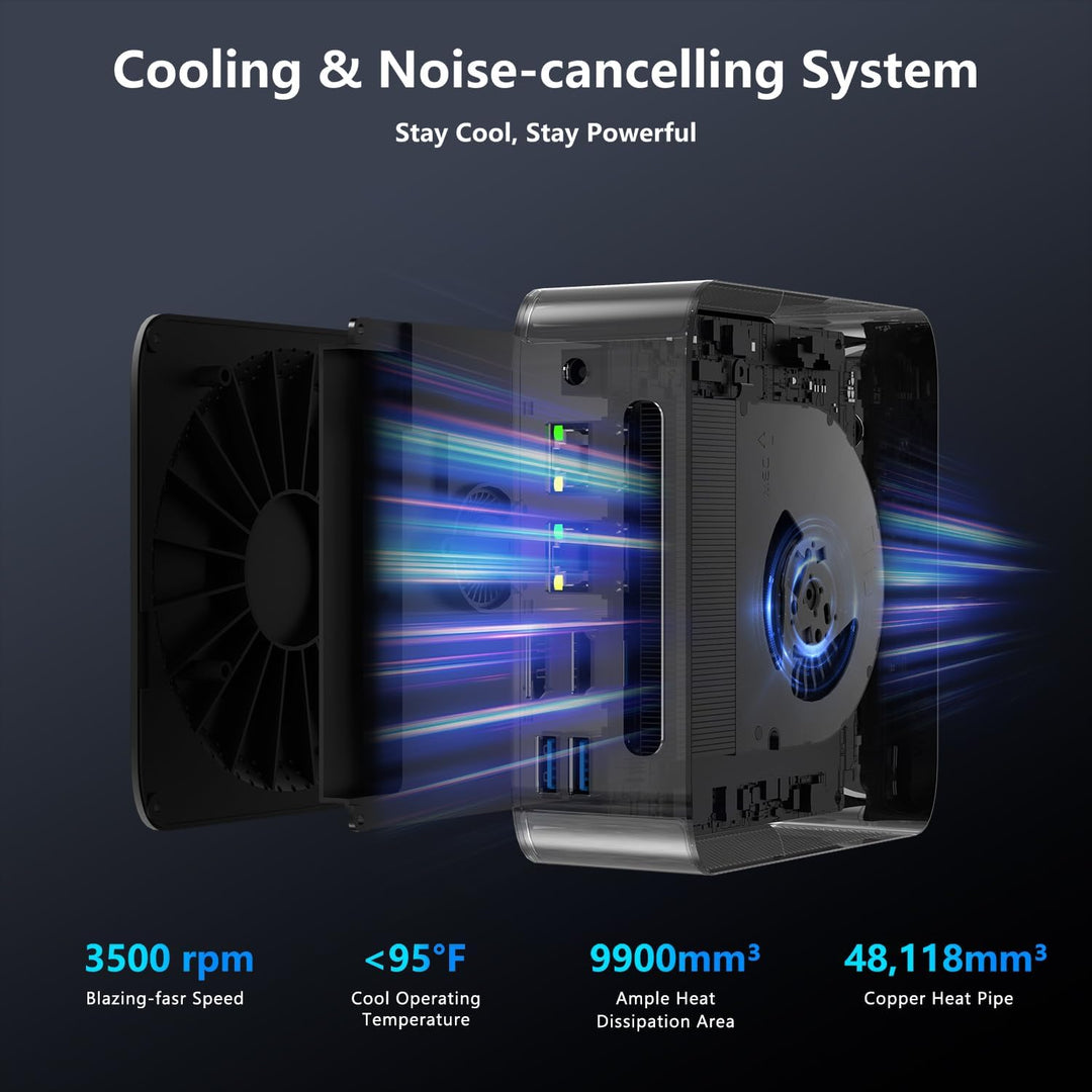 - ✅ Neues, leises Kühldesign - Der kompakte ALLIWAVA H90Pro Mini Computer misst nur 13 x 12,8 x 5,2 cm und wiegt 0,36 kg. Das neu entwickelte Metall-Mittelframe mit optimierten Lufteinlässen und Lüftungsöffnungen. Neue interne Hardware: Dampfkammer