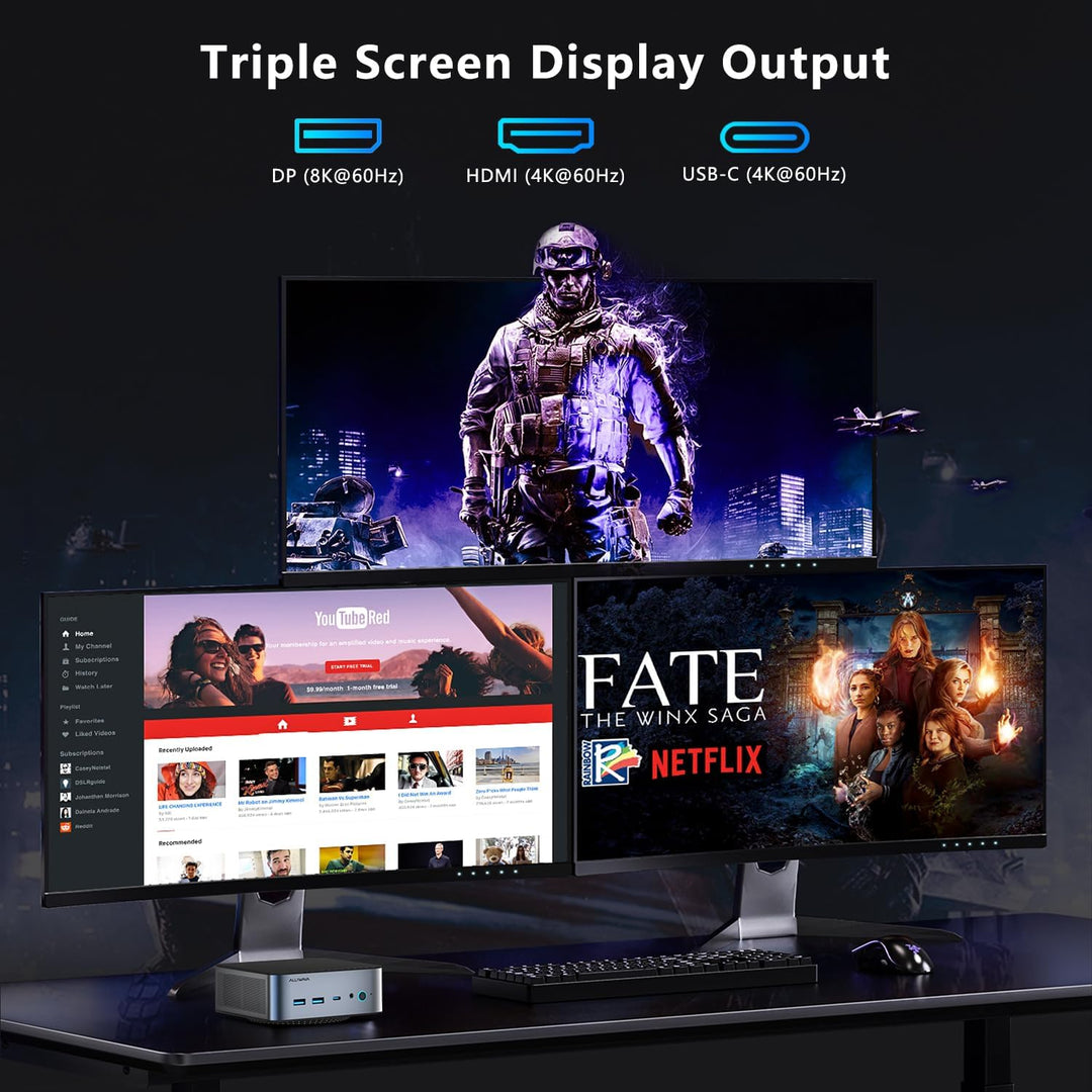 - ✅ 4K UHD Triple Display & 2,4Gbps WiFi 6 - Unterstützt drei 4K Bildschirme gleichzeitig (HDMI 2.1 + DP 1.4 + USB-C DisplayPort) für effizientes Multitasking. Ausgestattet mit schnellem Intel AX200 WiFi 6 (bis 2,4 Gbps) und BT 5.2 für exzellente