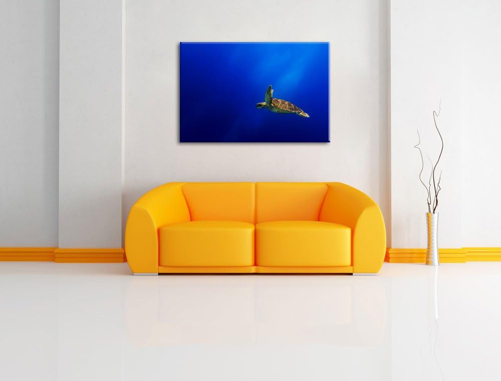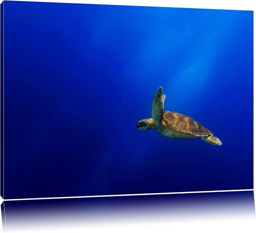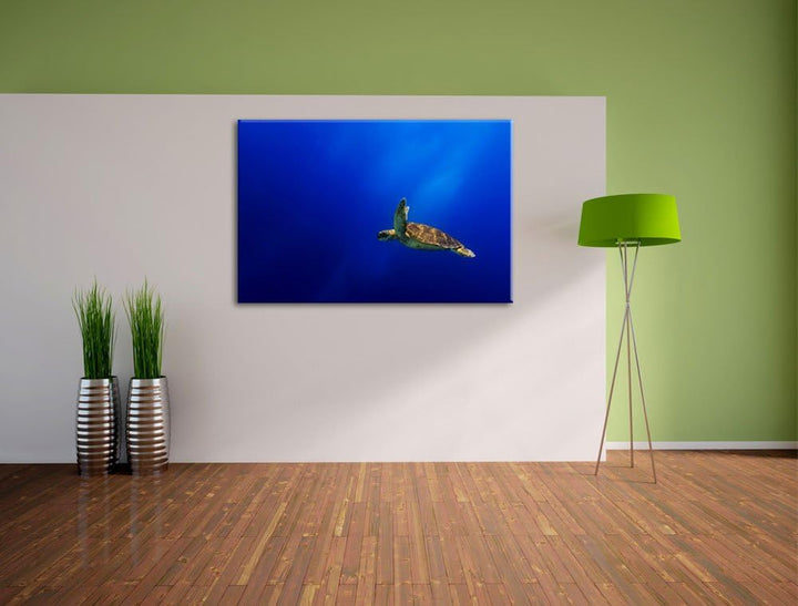 Alte Schildkröte im Meer Format: 100x70 auf Leinwand, XXL riesige Bilder fertig gerahmt mit Keilrahm