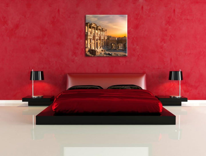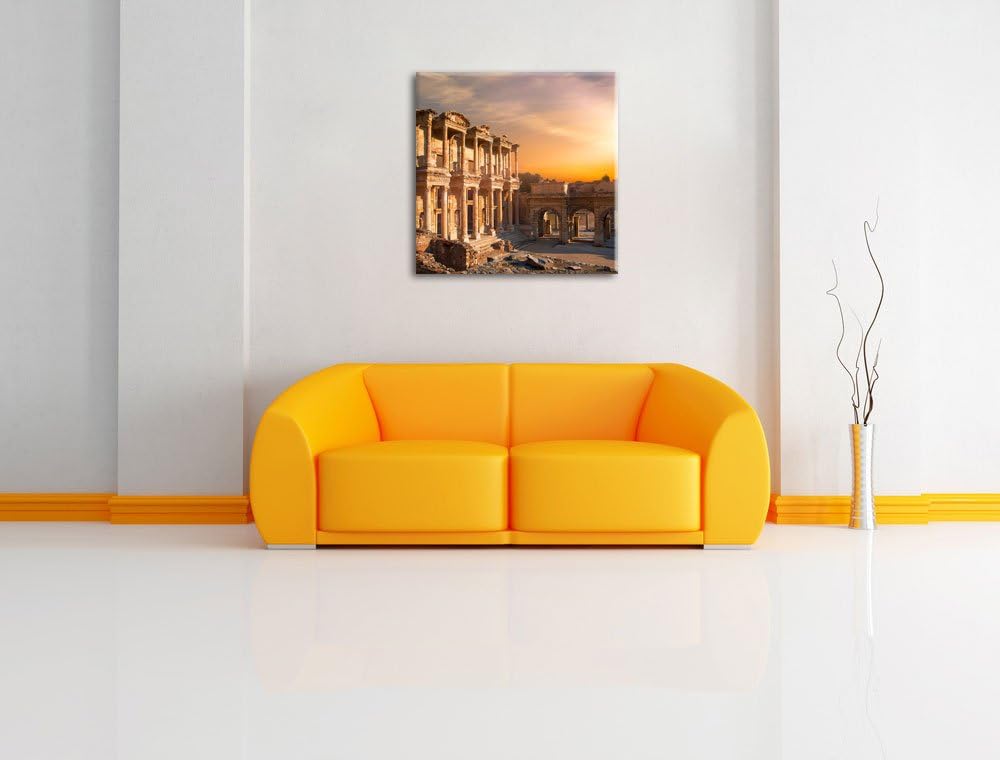 alte Tempelruine, Format: 70x70 auf Leinwand, XXL riesige Bilder fertig gerahmt mit Keilrahmen, Kuns