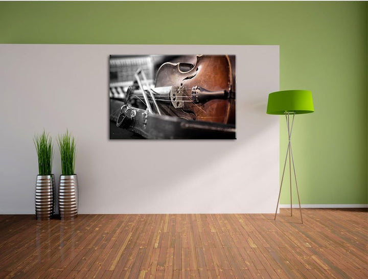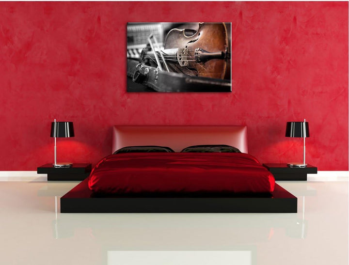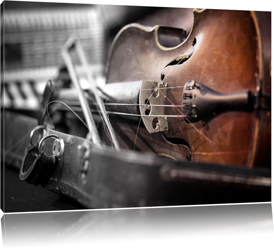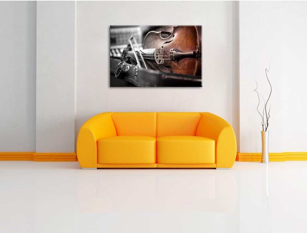 Alte Violine Schwarz/Weiss, Format: 100x70 auf Leinwand, XXL riesige Bilder fertig gerahmt mit Keilr