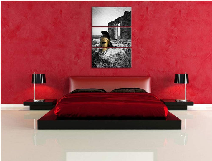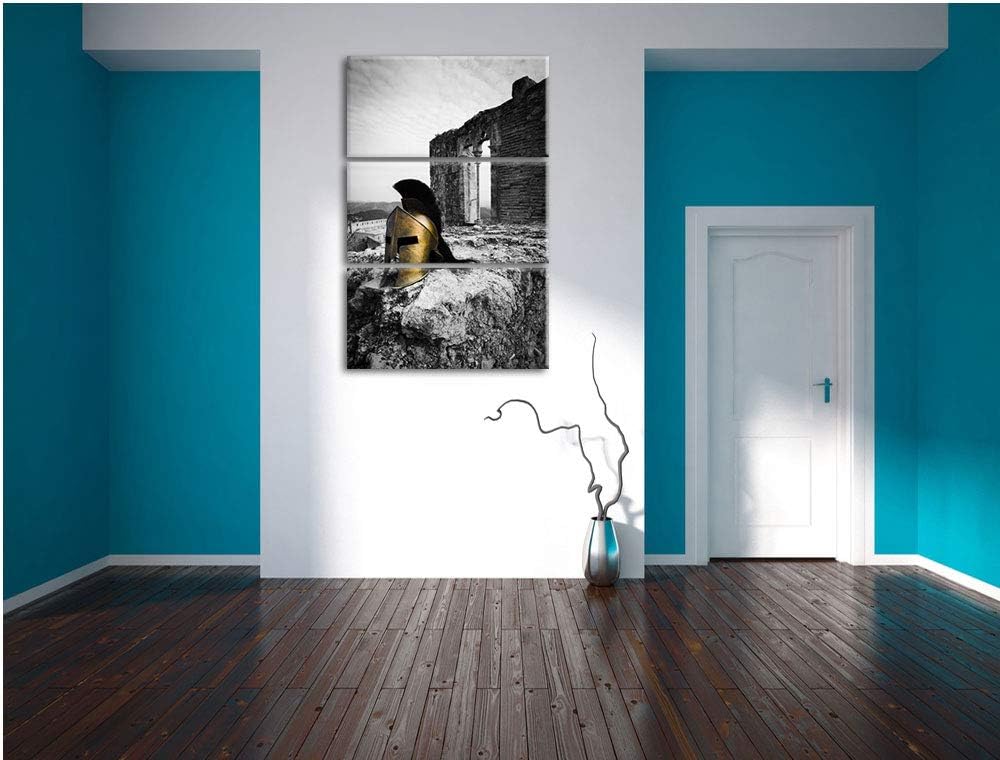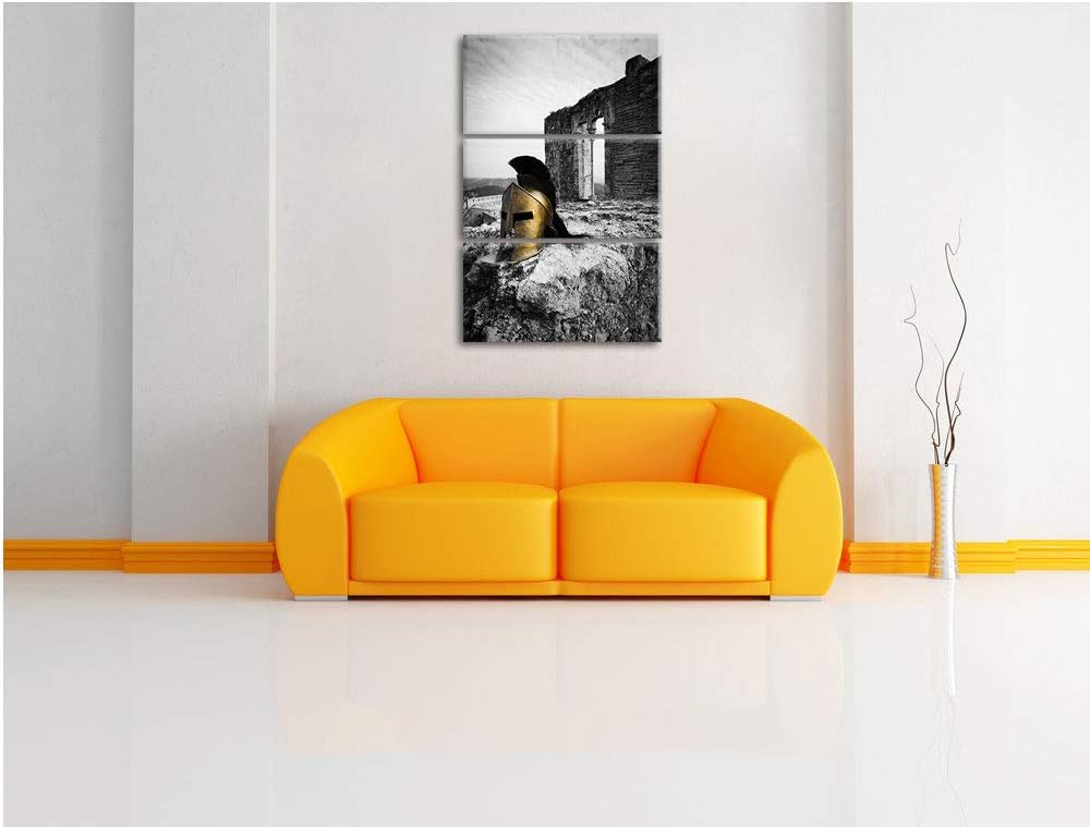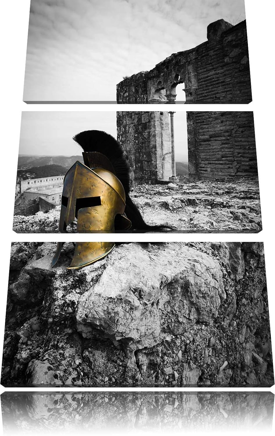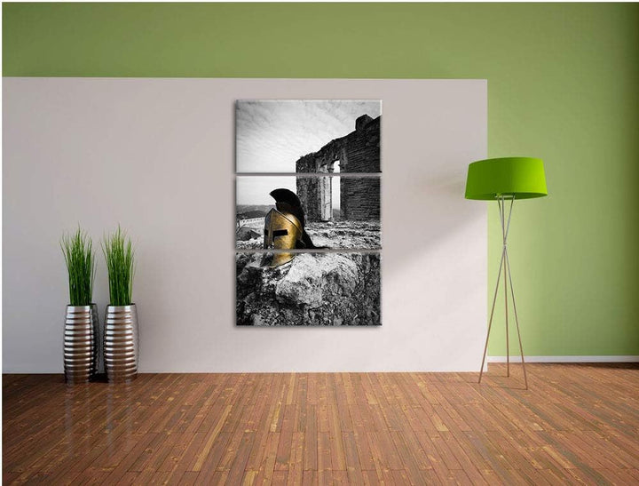 alter Helm einer Rüstung vor Ruine schwarz/weiss 3-Teiler Leinwandbild 120x80 Bild auf Leinwand, XXL