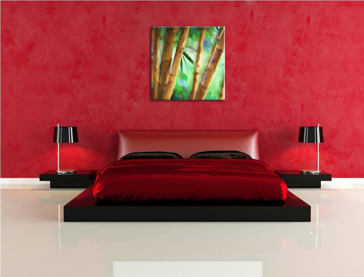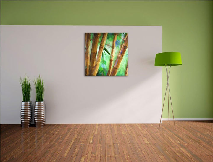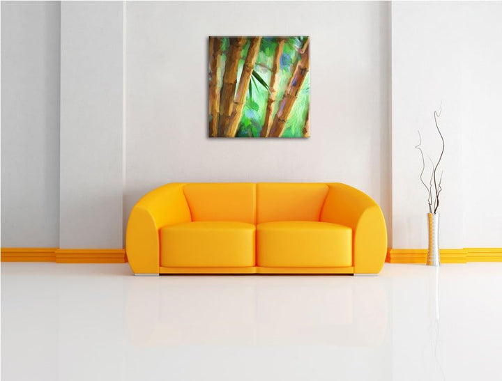 alter rustikaler Bambus, Format: 70x70 auf Leinwand, XXL riesige Bilder fertig gerahmt mit Keilrahme