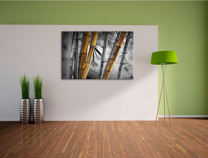 alter rustikaler Bambus schwarz/weiss Format: 100x70 auf Leinwand, XXL riesige Bilder fertig gerahmt