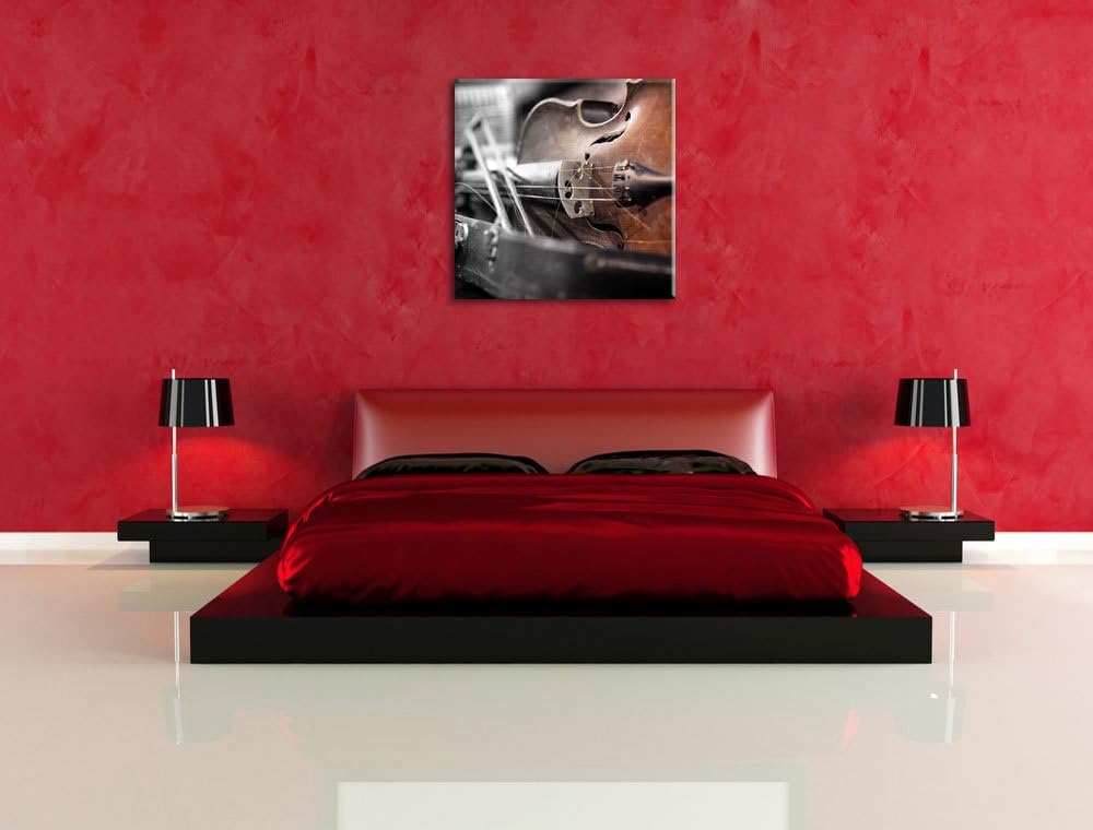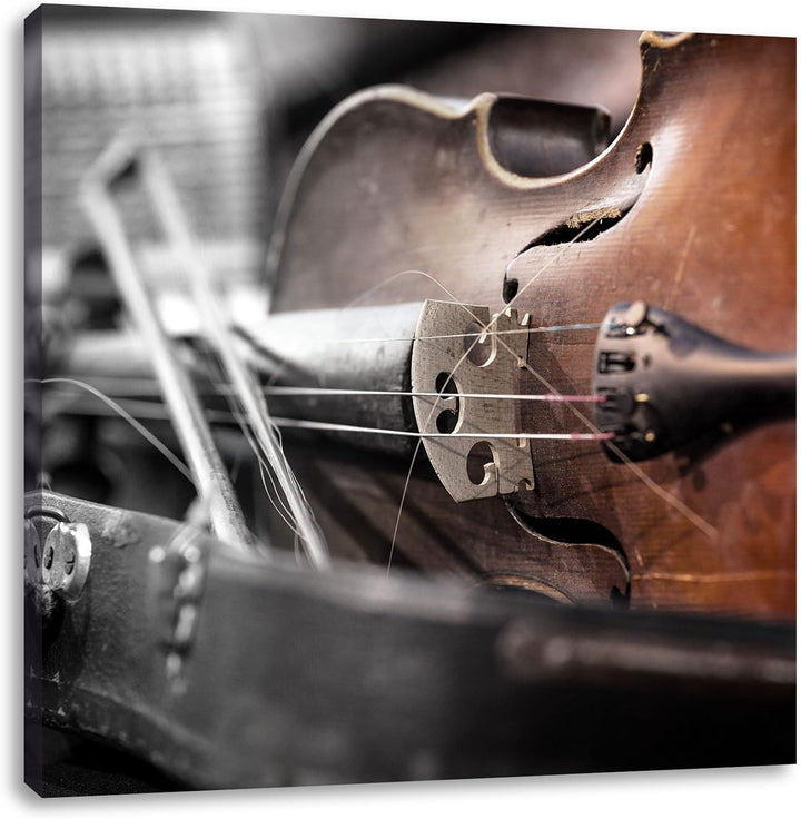Alte Violine Schwarz/Weiss, Format: 70x70 auf Leinwand, XXL riesige Bilder fertig gerahmt mit Keilra