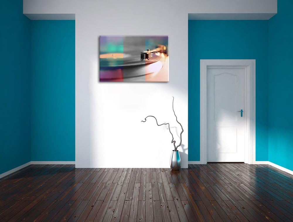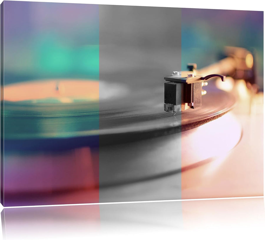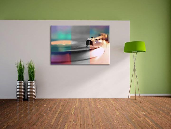 altmodischer Schallplattenspieler schwarz/weiss Format: 100x70 auf Leinwand, XXL riesige Bilder fert