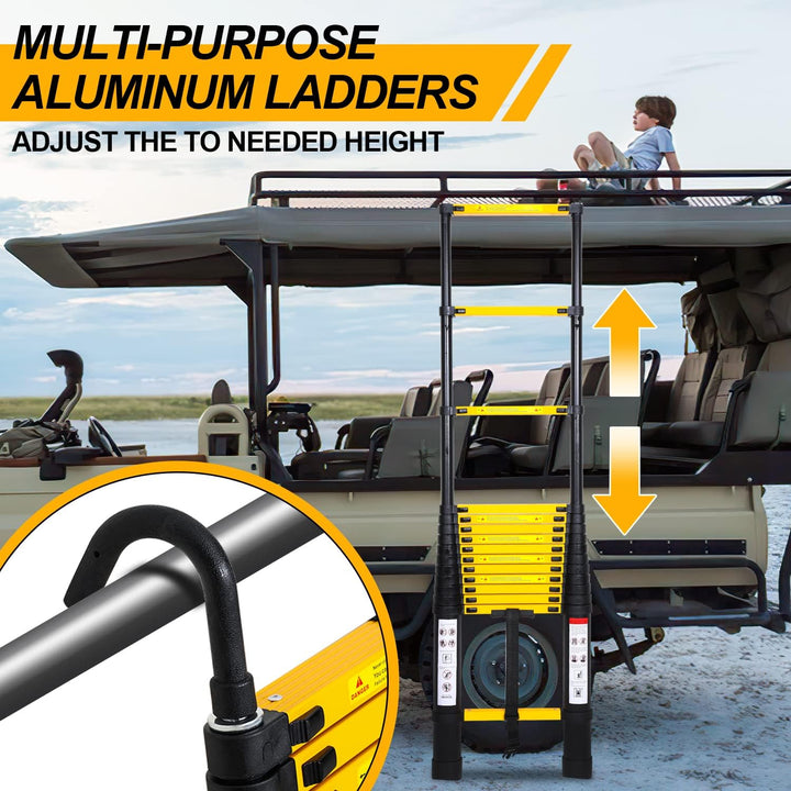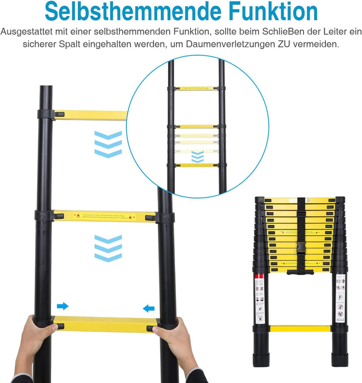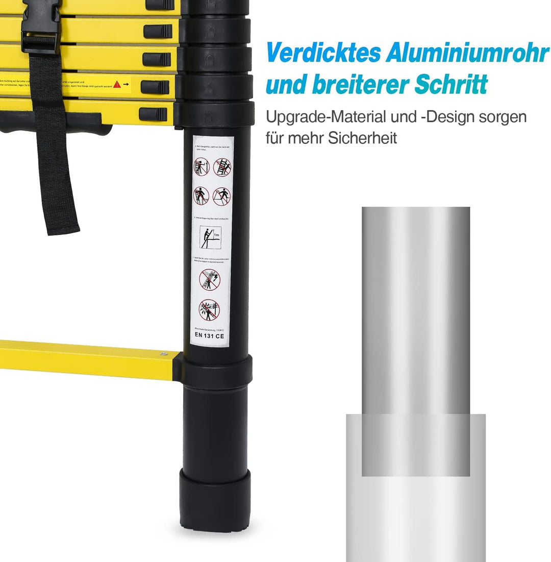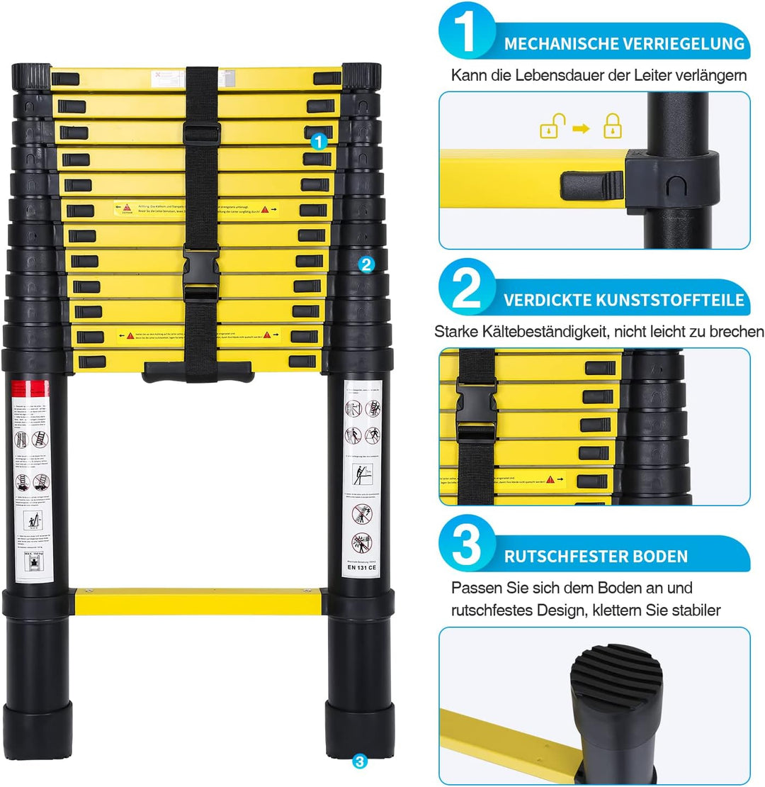 - 🔥Sicher und Zuverlässig: Zwischen den Sprossen ist Finger Sicherheitseinstellungen vorhanden, um das Einklemmen der Finger beim Ein- und Ausfahren zu verhindern. Eine gummierte rutschfeste Stufe und ein stossdämpfender Riemen zwischen den Sprossen