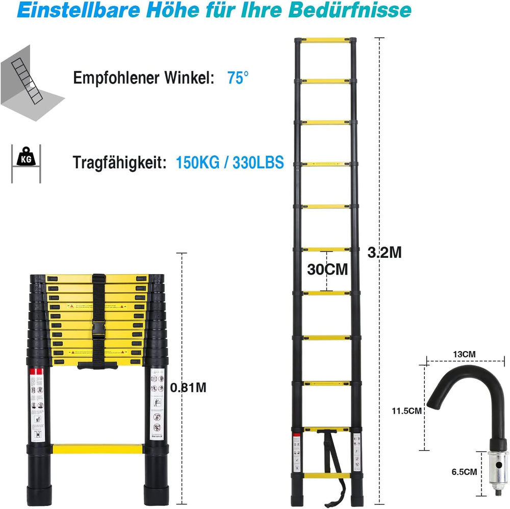 - 🔥Tragbar und flexibel: Die Teleskopleiter besteht aus einer leichten, aber hochwertigen Aluminiumlegierung und wiegt nur 8.2 kg. Die Schiebeleiter ist nach dem Klappen nur noch 0.81 M gross, höhenverstellbar bis 3,2 m. Es kann im Keller, im Dachboden