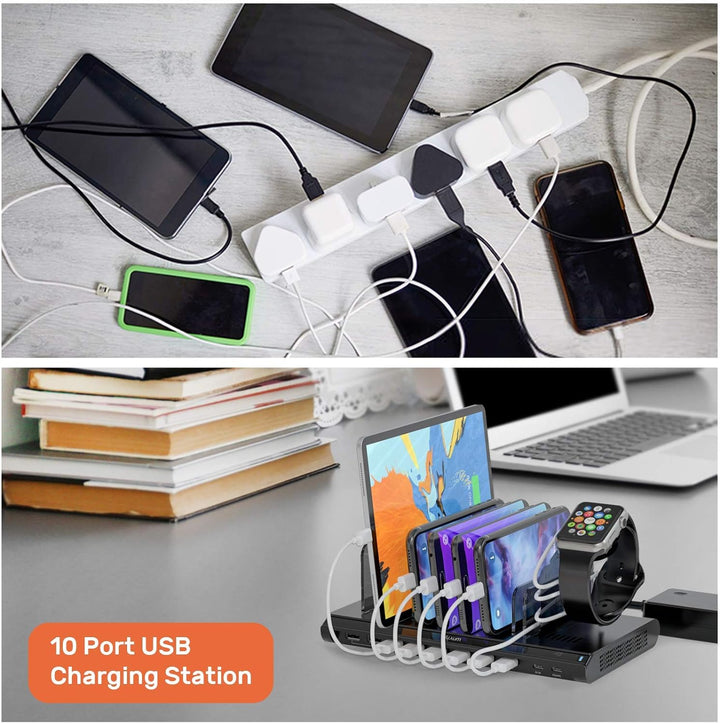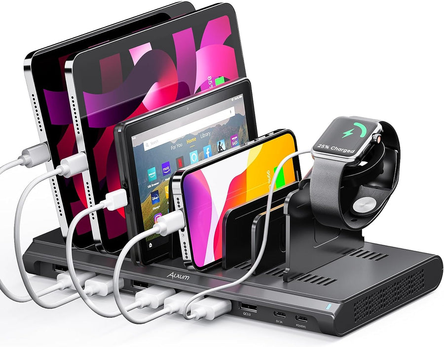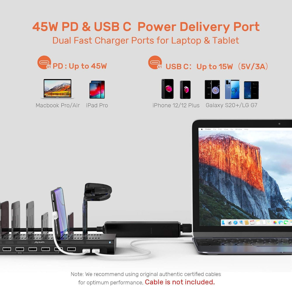 - 【Schnelles und intelligentes Laden】Alxum USB Ladestation bietet 10-Port-USB-Ausgang für Full-Speed-Laden.Beinhaltet 1*PD 45W,1*USB C Port,und 1*QC3.0 Schnellaufladung.Gesamtleistung von 120W voll kompatibel mit Ihren Tablets,Smartphones und Watch.