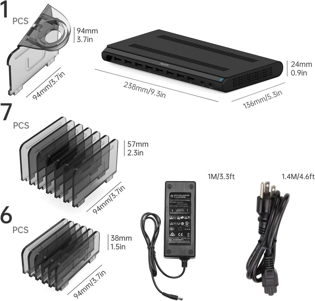 - 【Was wir anbieten】1*10 Ports USB Ladestation 120w ,1*20V/6A DC Power Adapter,1*Netzkabel,14*Abnehmbare Trennwände.1*Netzkabel.24 Stunden E-Mail-Support, wir sind bereit, Ihnen zu dienen.