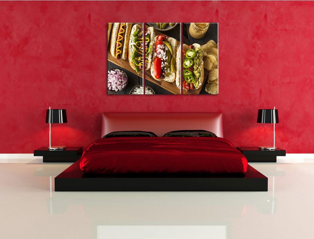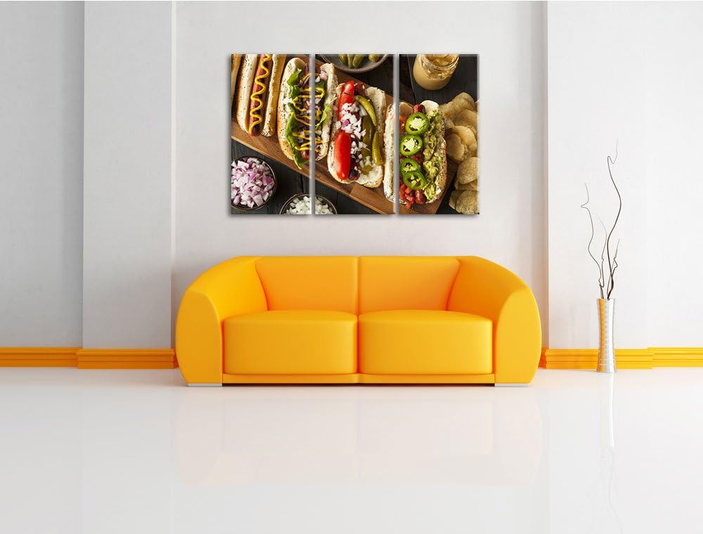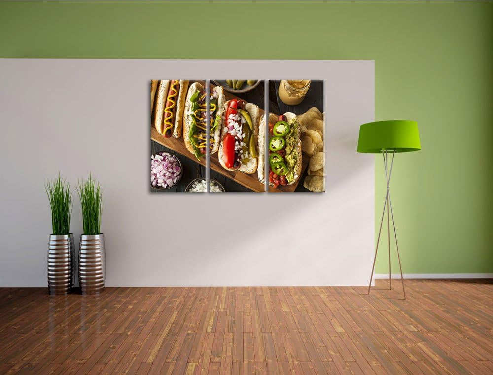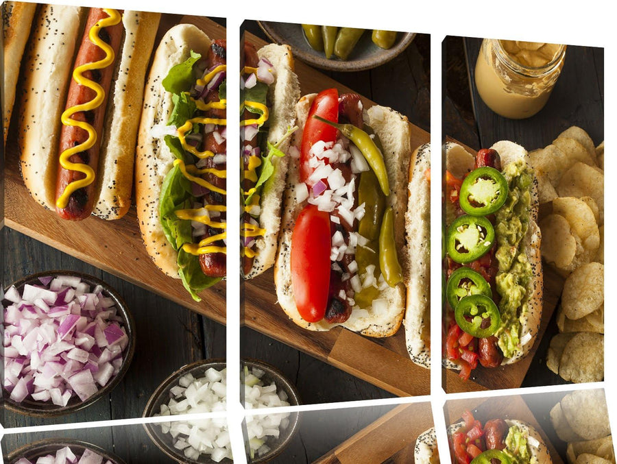 Amerikanische Hotdogs als 3-Teiler Leinwandbild 120x80 Bild auf Leinwand, XXL riesige Bilder fertig