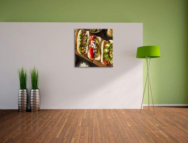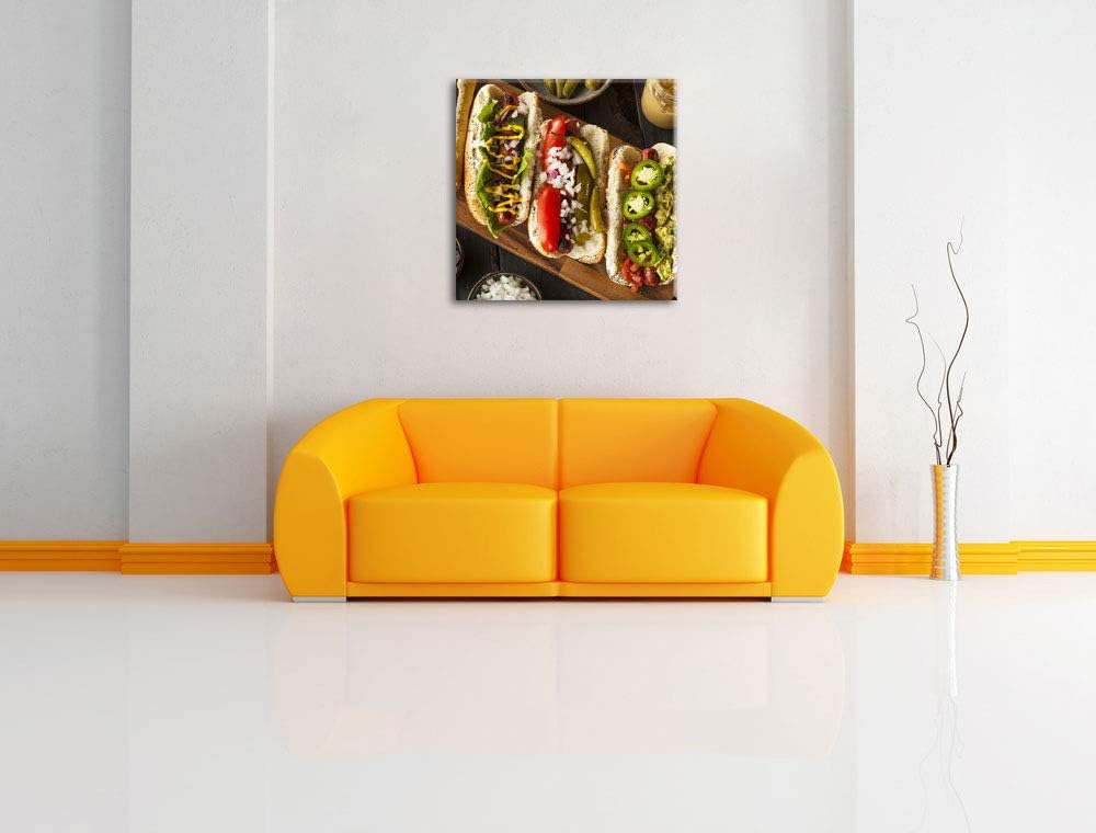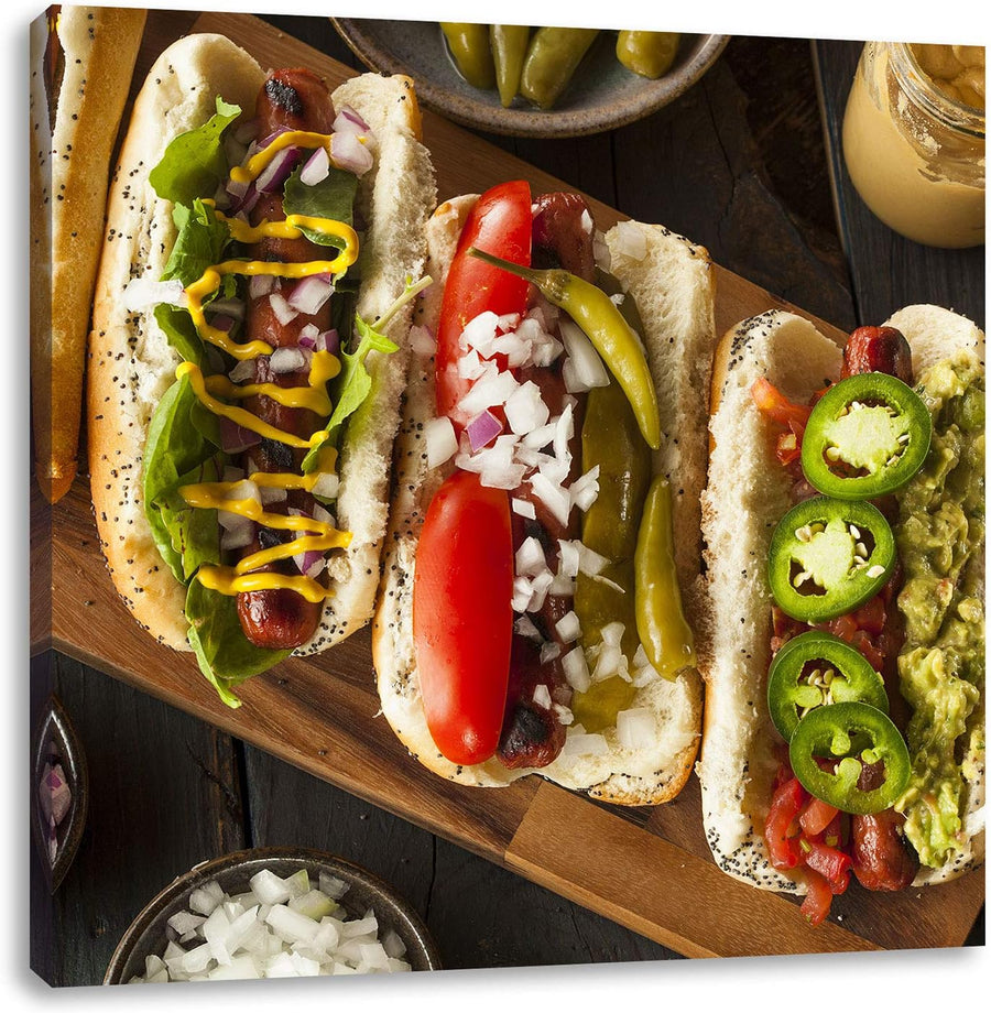Amerikanische Hotdogs, Format: 70x70 auf Leinwand, XXL riesige Bilder fertig gerahmt mit Keilrahmen,