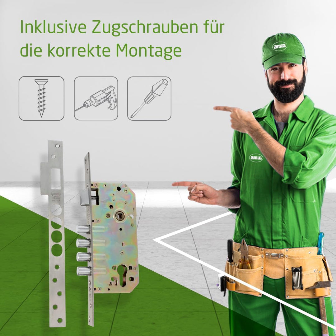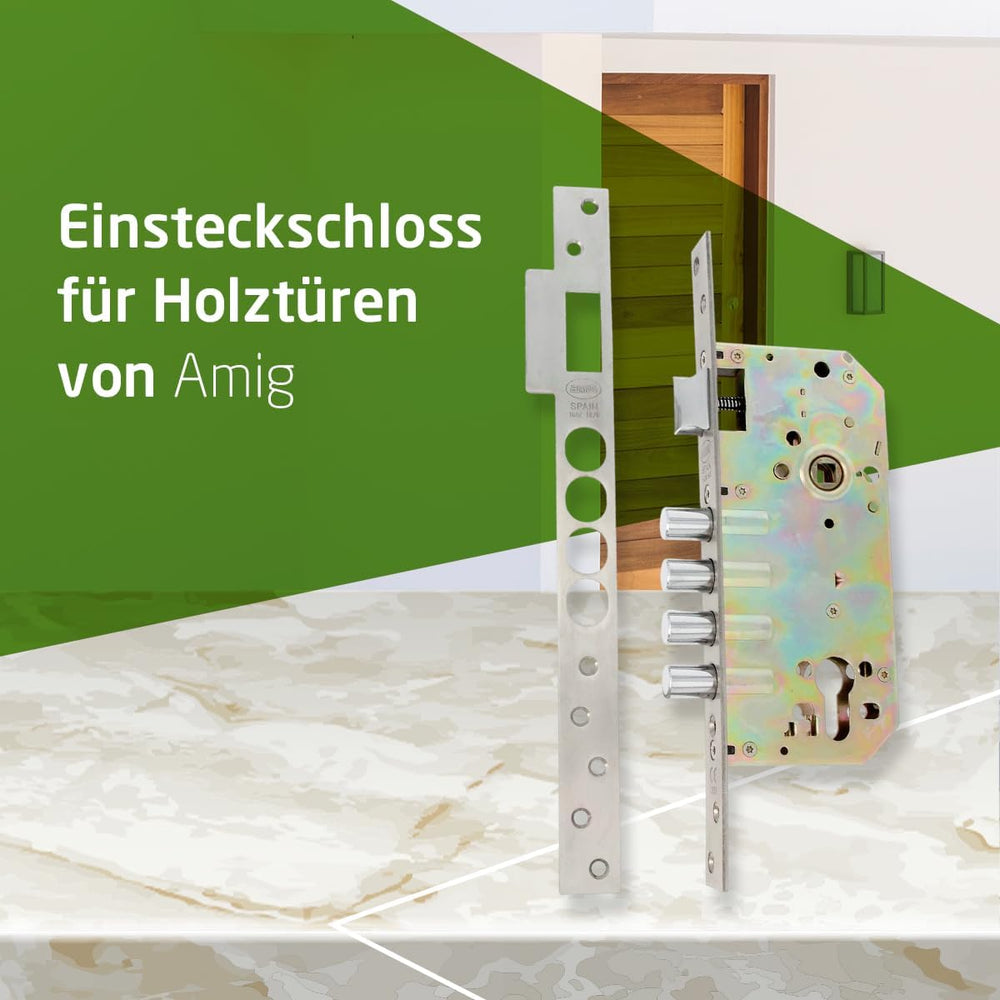Amig - Einsteckschloss mit Schiebers für Holztüren | 50/85 mm | Ohne Zylinder und Sicherheitsriegel