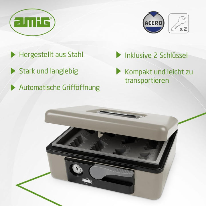 Amig - Geldkassette | Sicherheits Stahlkonstruktion | Herausnehmbares Münzfach | Robuste Emaille-Obe