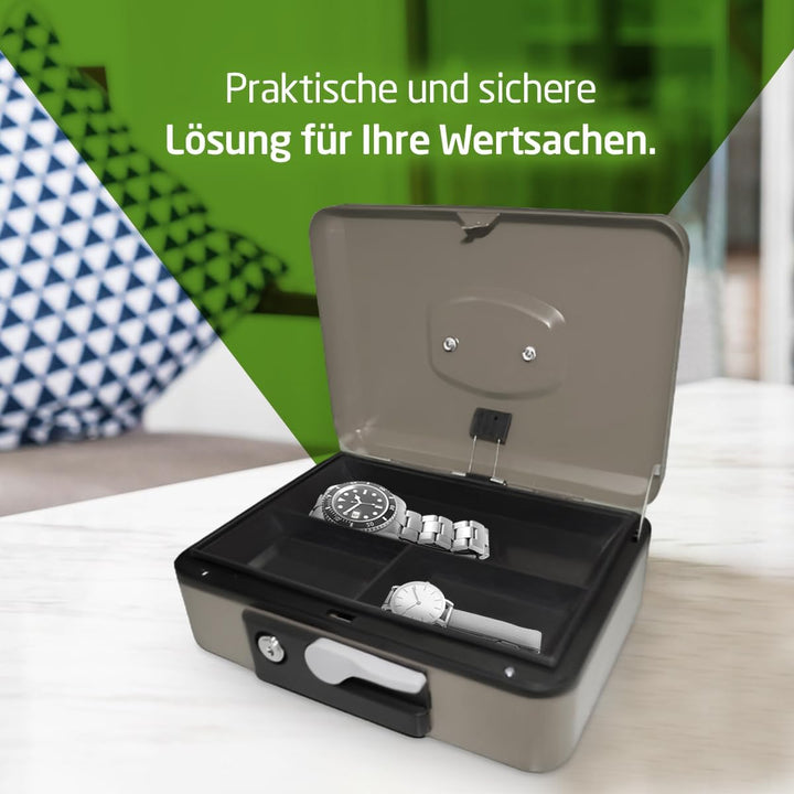 • SICHER: Der Geldkasten bietet eine praktische und sichere Lösung, um Ihre wertvollen Gegenstände organisiert und geschützt aufzubewahren. Mit Sicherheitszylinder, automatischem Öffnungs- und Schliessmechanismus und 2 Schlüsseln für zusätzliche