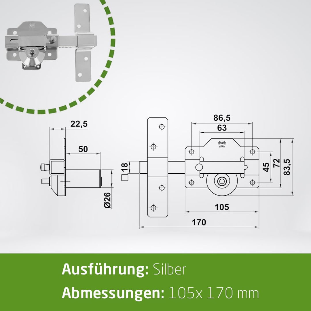 • DETAILS: Masse: 105 x 170 mm Innenzylinder Länge 70 mm Material: Stahl, verwendet durch seine lange Lebensdauer und Beständigkeit gegen Reibung, Rost und Korrosion.