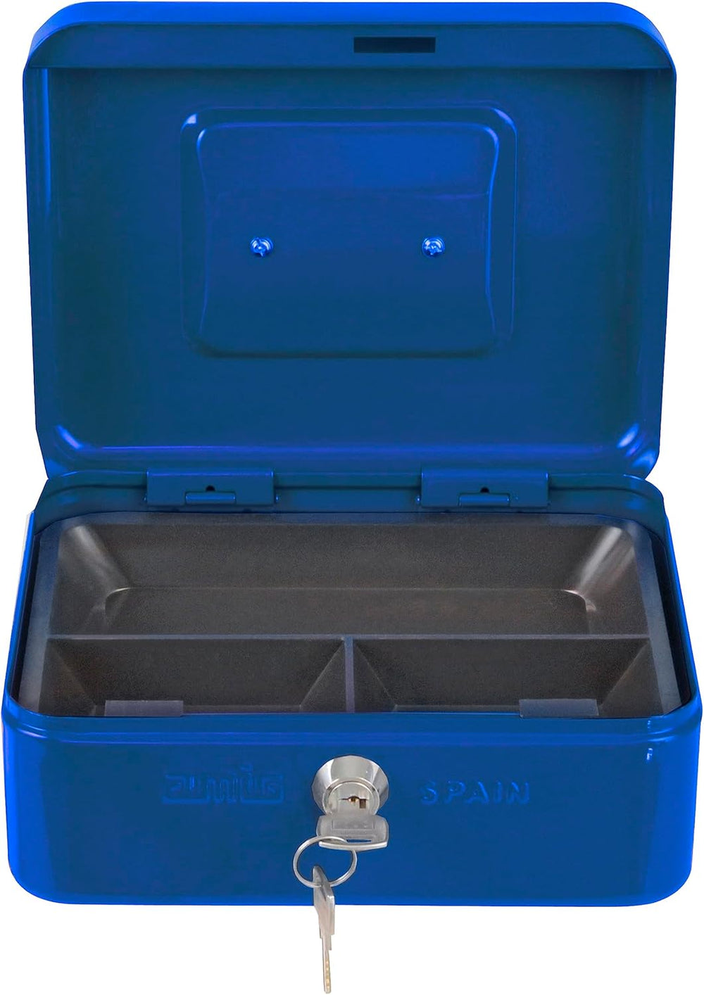 - GELDKASSETTE: Bietet eine perfekte Lösung, um Ihre Wertgegenstände organisiert und geschützt aufzubewahren. Mit einem vernickelten Schloss und 2 Serrata-Schlüsseln für erhöhte Sicherheit. Masse: 200 x 160 x 90 mm. Color: Blau