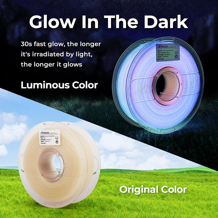 - 【Leuchtend im Dunkeln】: Das im Dunkeln leuchtende Amolen-Filament verleiht Ihren 3D-Drucken einen einzigartigen und faszinierenden Glanz. Ideal für auffällige Designs, die im Dunkeln hervorstechen – perfekt für nächtliche Displays und