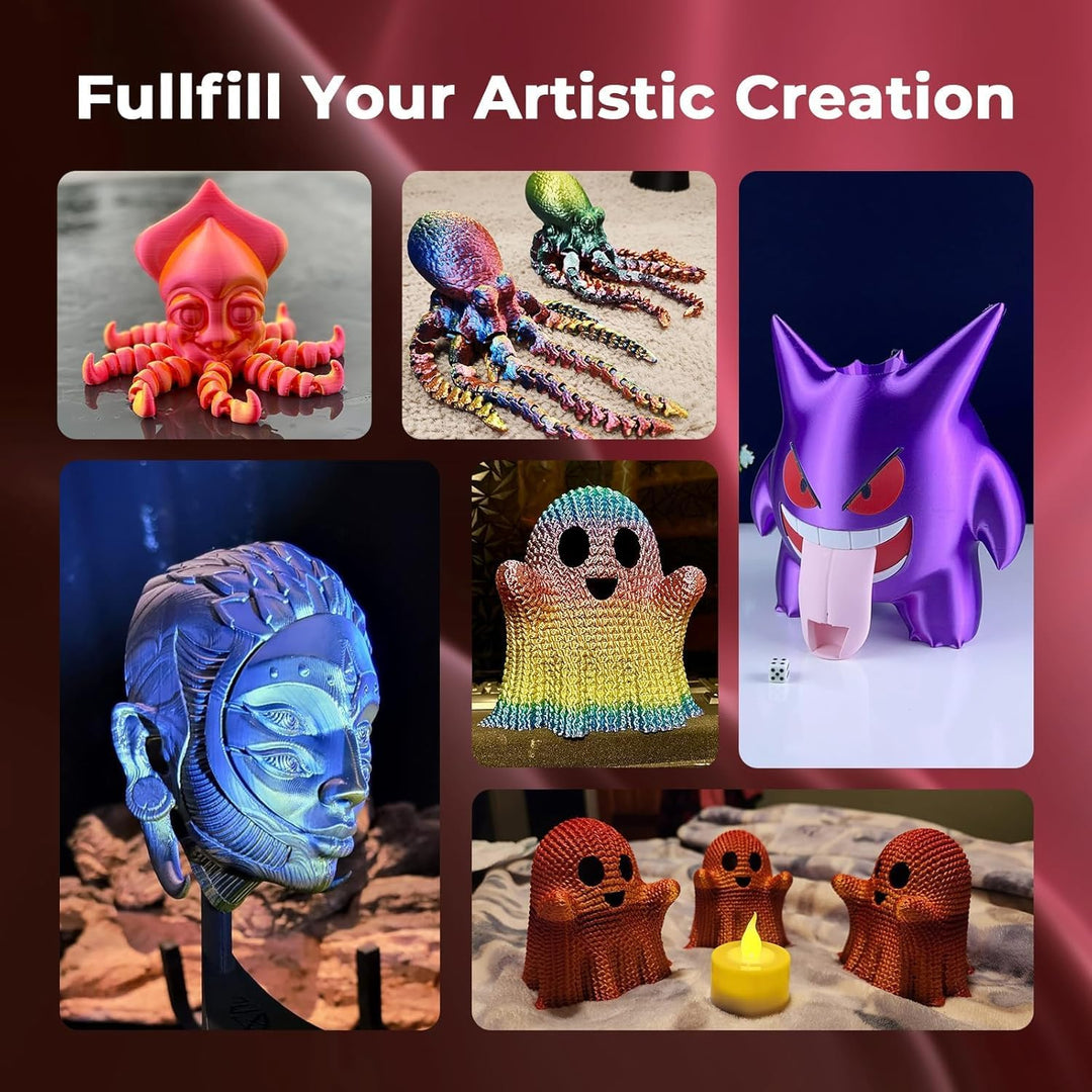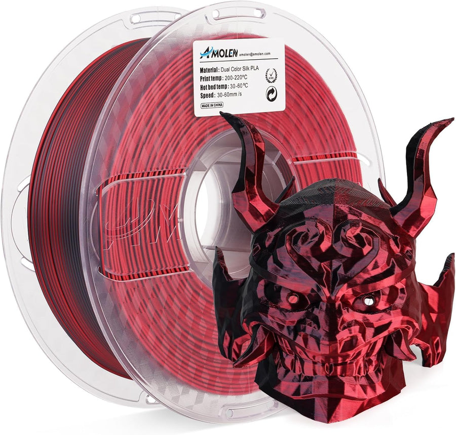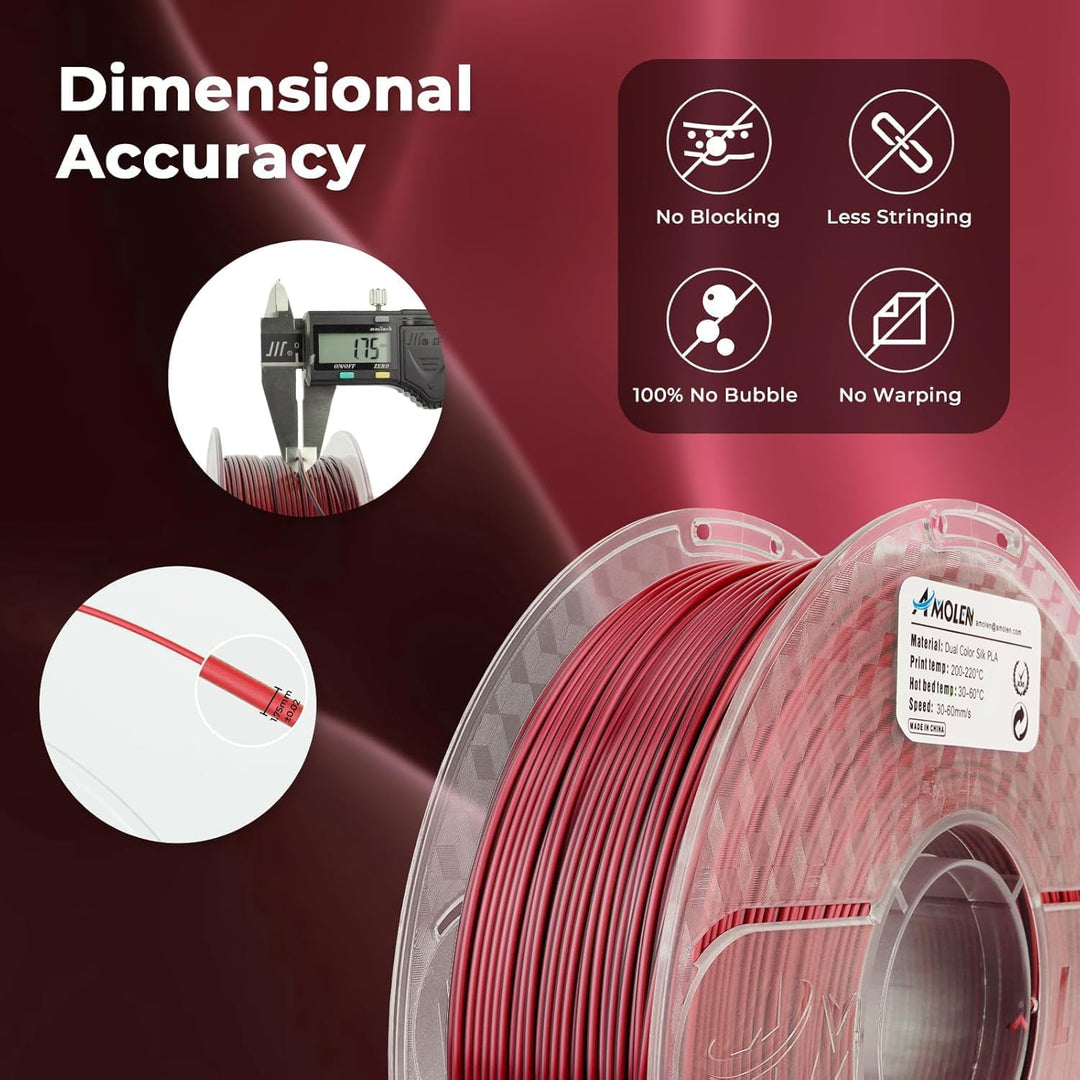 - Atemberaubende Silk PLA Filament Effekt - AMOLEN Zweifarbig PLA Filament von liefert eine glatte, seidige Oberfläche, die das 3D-Druck-Design zum Leben erweckt. Ohne Polieren, können Sie ein wunderschönes Finish erreichen. Shiny silk Rot und silk