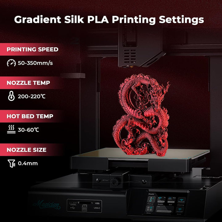 - Hohe Kompatibilität - Zweifarbig Silk PLA Filament mit einem Durchmesser von 1,75 mm und Masshaltigkeit +/- 0,02 mm. Eine Rolle wiegt 1 kg (2,2 lbs). Drucktemperatur: 190-220°C. Druckbett: 30-60°C,Ganz gleich ob Sie detaillierte Miniaturen oder