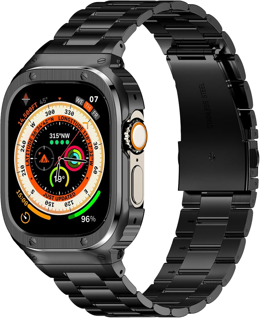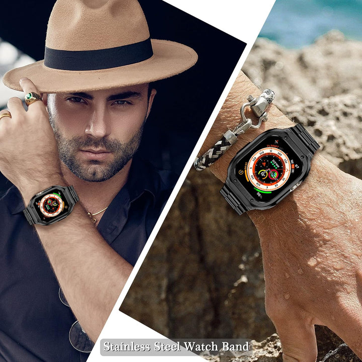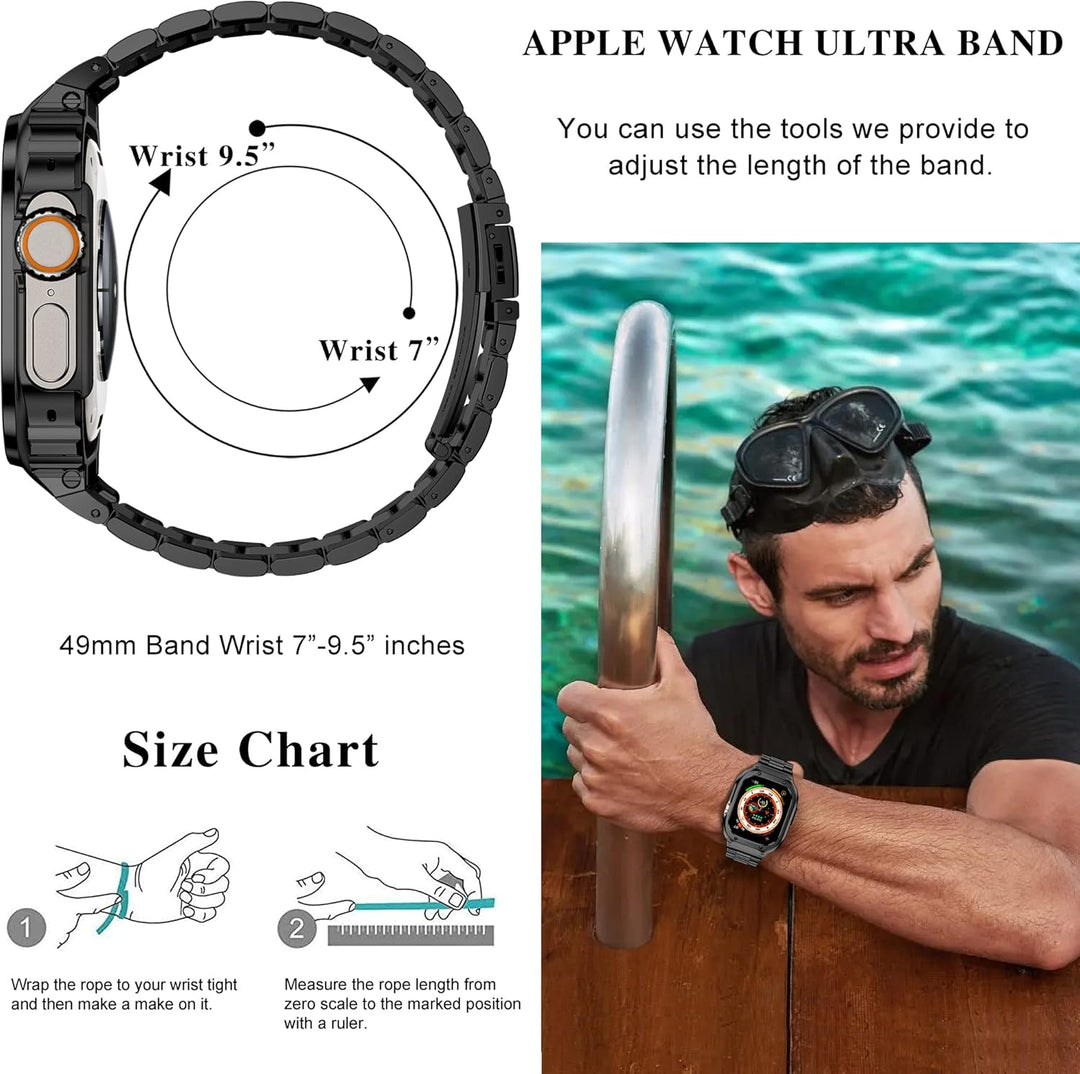 - 【Apple Watch Ultra/Ultra 2 Band 49mm】Das Edelstahl Apple Watch Ultra Band mit Gehäuse passt nur für Apple Watch Ultra/Ultra 2(49mm), nicht für andere Modelle. Bitte wählen Sie die richtige Grösse für Ihre Uhr. Mit exquisitem Aussehen Design,