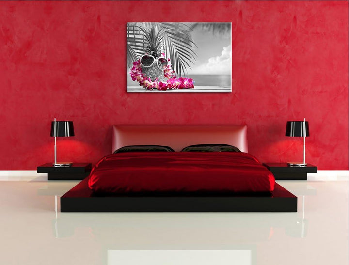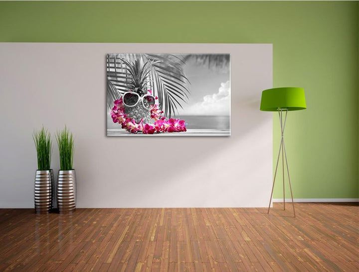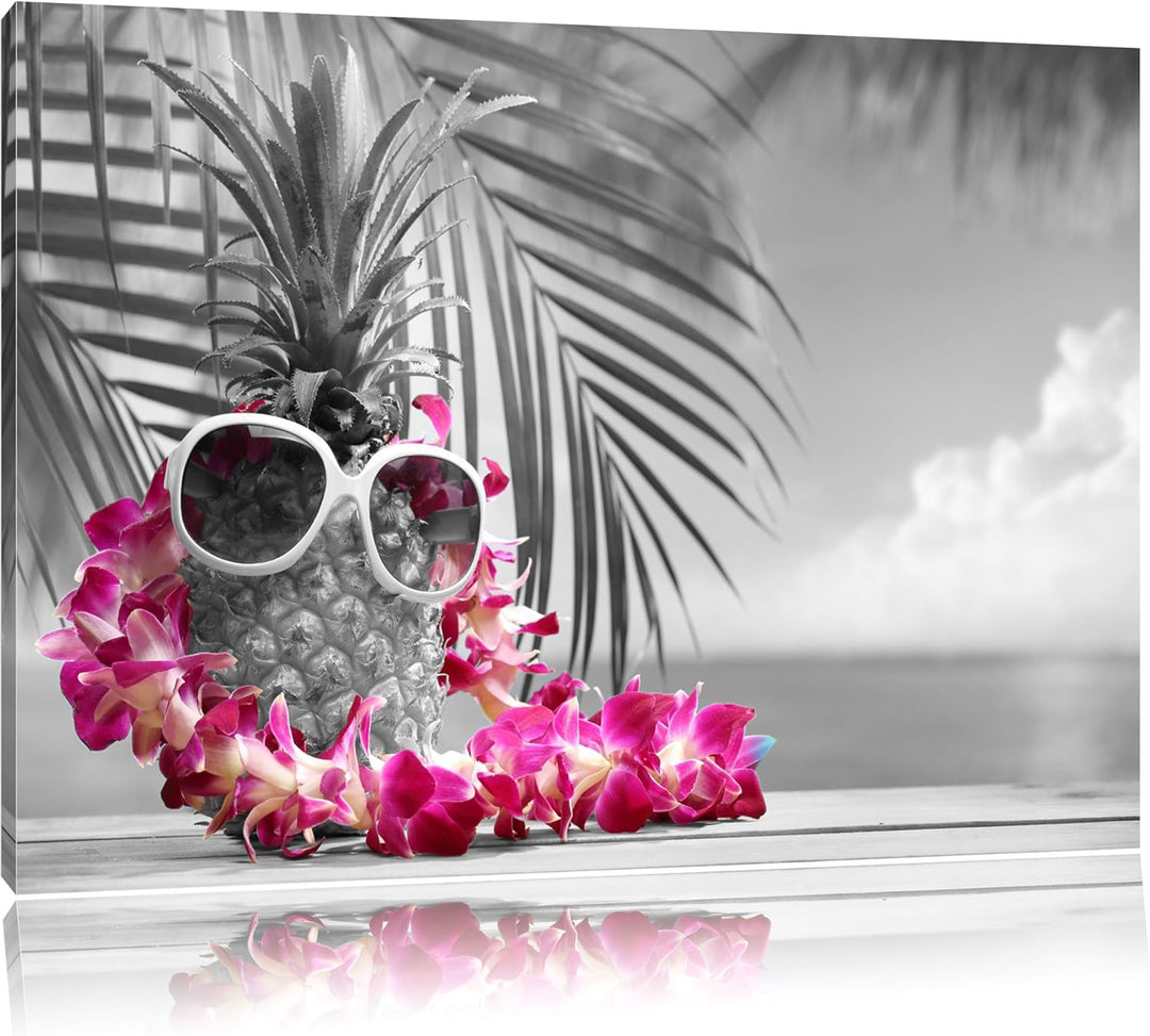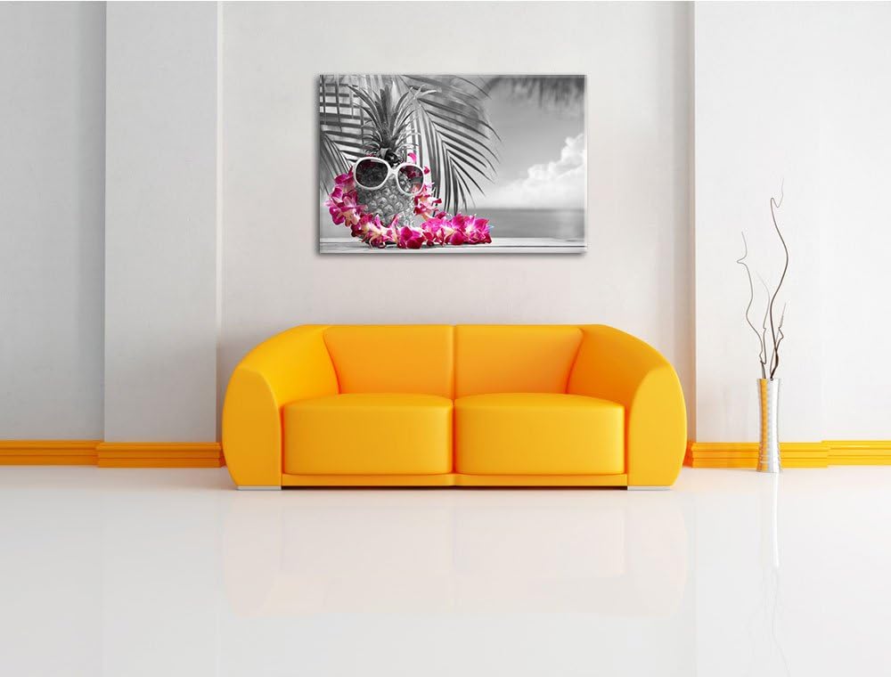 Ananas mit Sonnenbrille schwarz/weiss Format: 100x70 auf Leinwand, XXL riesige Bilder fertig gerahmt