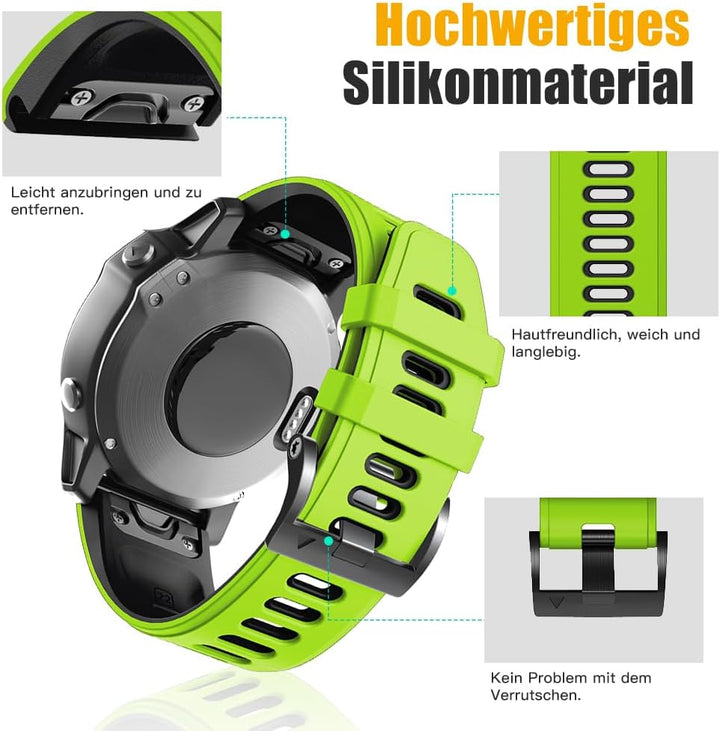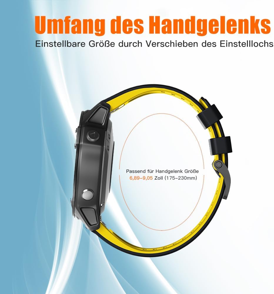 - [Kompatible Modelle] Dieses Silikonarmband ist kompatibel mit Garmin Fenix 6/6 Pro, Fenix 7/7 Pro, Fenix 8 47 mm, Fenix E Smartwatch. Funktioniert auch mit Epix 2/Epix Pro 47mm, Descent G1, Fenix 5/Fenix 5 Plus, Forerunner