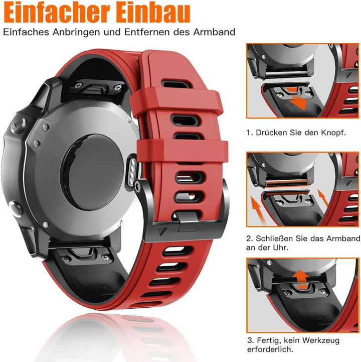 - [Kompatible Modelle] Dieses Silikonarmband ist kompatibel mit Garmin Fenix 6/6 Pro, Fenix 7/7 Pro, Fenix 8 47 mm, Fenix E Smartwatch. Funktioniert auch mit Epix 2/Epix Pro 47mm, Descent G1, Fenix 5/Fenix 5 Plus, Forerunner