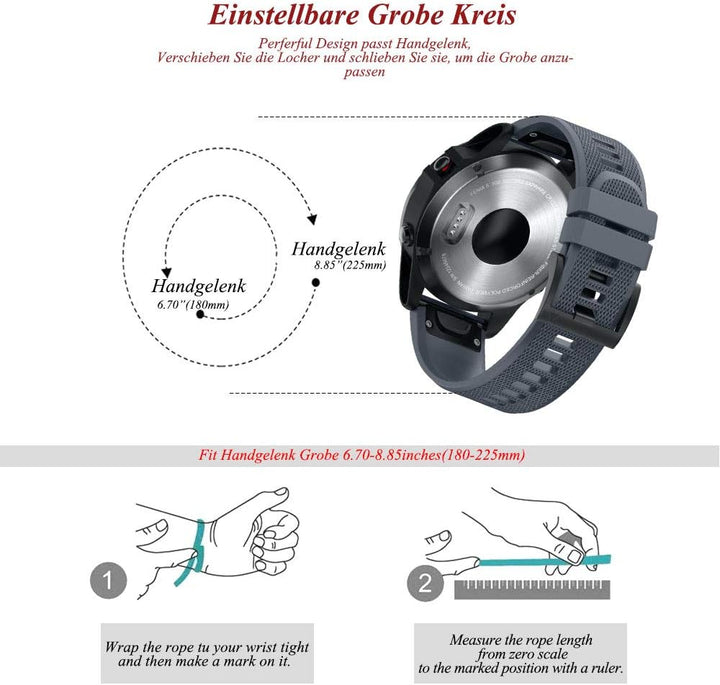 - [Bequem zu bedienen] Passend für Fenix 6X / 6X Pro / Fenix 5X / 5X Plus / Fenix 3 / 3HR. Passen Sie die Handgelenke mit 170 mm bis 225 mm an und decken Sie die meisten Handgelenkgrössen ab.