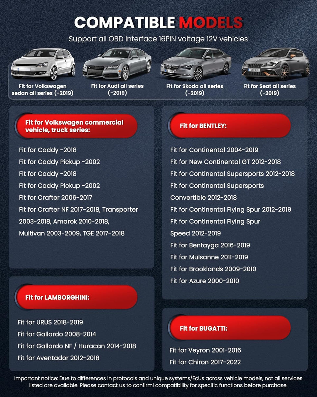 - ➤【3 Reset Service Funktionen + 7 anderen Funktionen】ANCEL BD500Pro Bluetooth OBD2 Adapter, einer der wirtschaftlichsten und professionelle OBD2 Stecker auf dem Markt heute. ANCEL BD500Pro VW Scanne hat nicht nur Service-Reset, EPB Bremsbelag