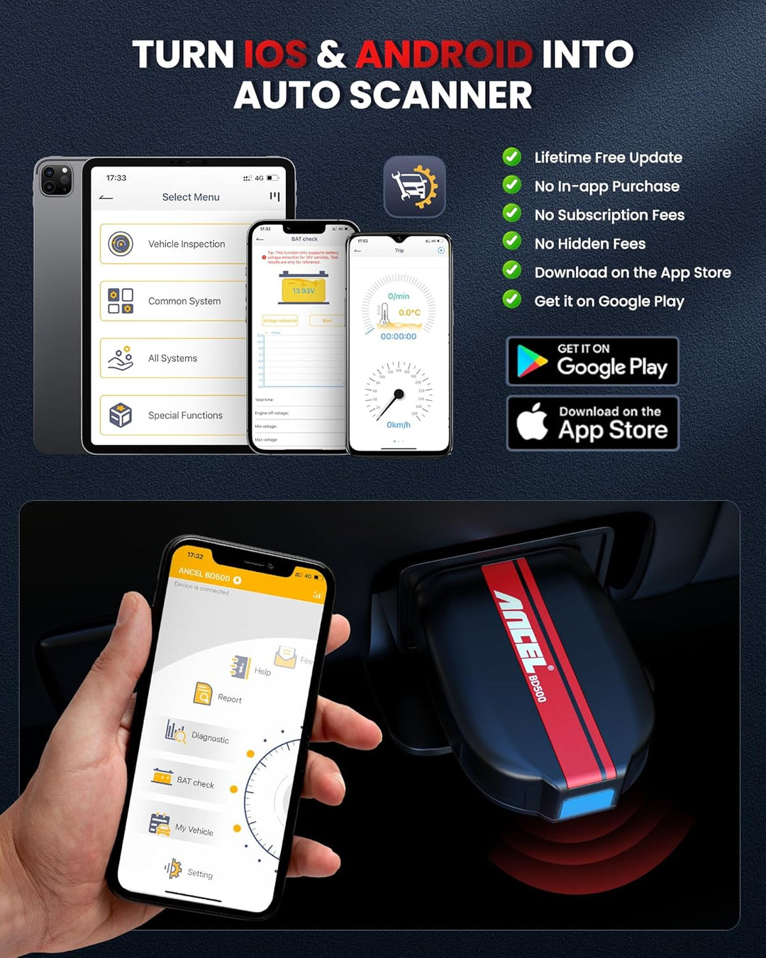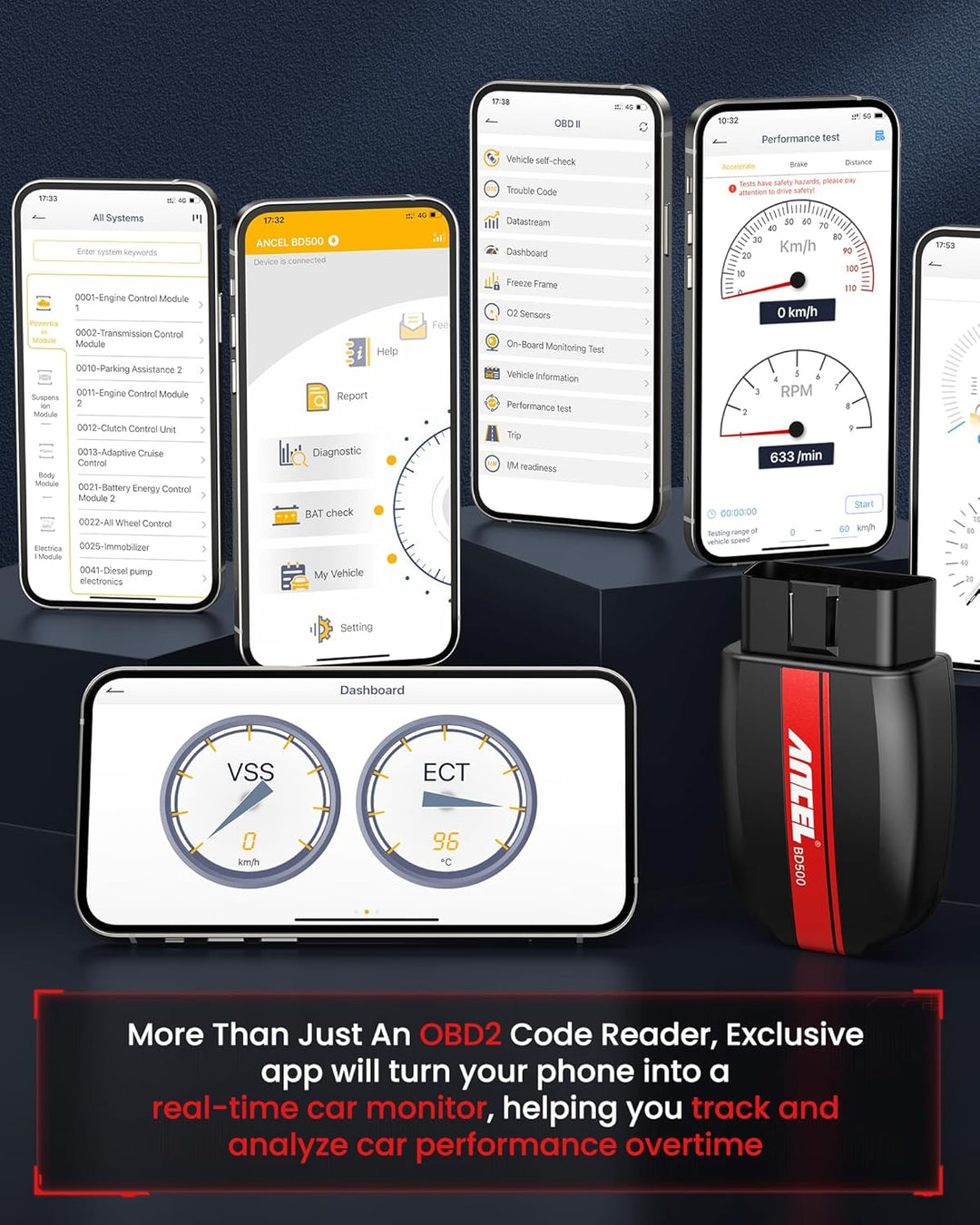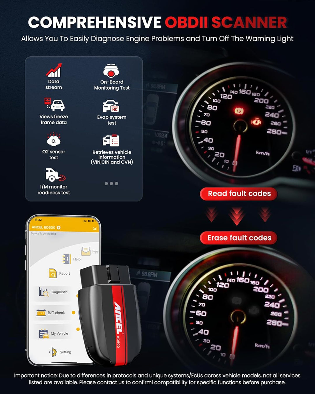 - 【Warme Tipps】 Überprüfen Sie vor dem Kauf die Kompatibilität mit Ihrem Fahrzeugmodell. ANCEL BD500Pro ist nicht für Bluetooth-Anwendungen von Drittanbietern verfügbar, nur offizielle ANCEL APP werden unterstützt.