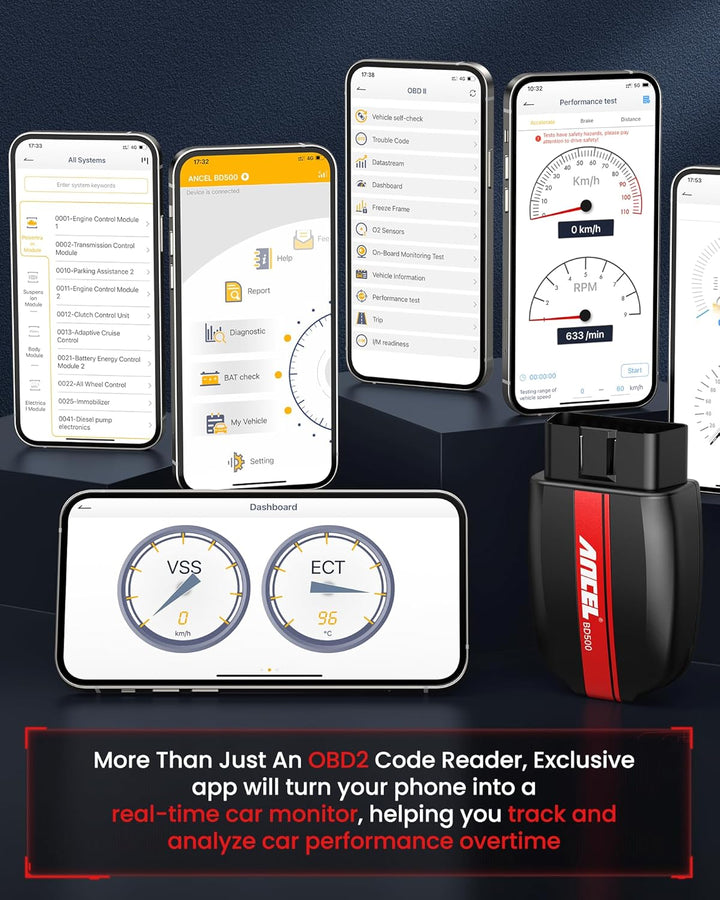 - ➤【Unterstützung aller OBD2 Funktionen】ANCEL BD500Pro OBD2 Bluetooth Adapter ist kompatibel mit allen OBD II Automobil Protokolle und unterstützt alle obd Test-Modi einschliesslich Code lesen, Code löschen, Live-Datenstrom, Freeze Frame,