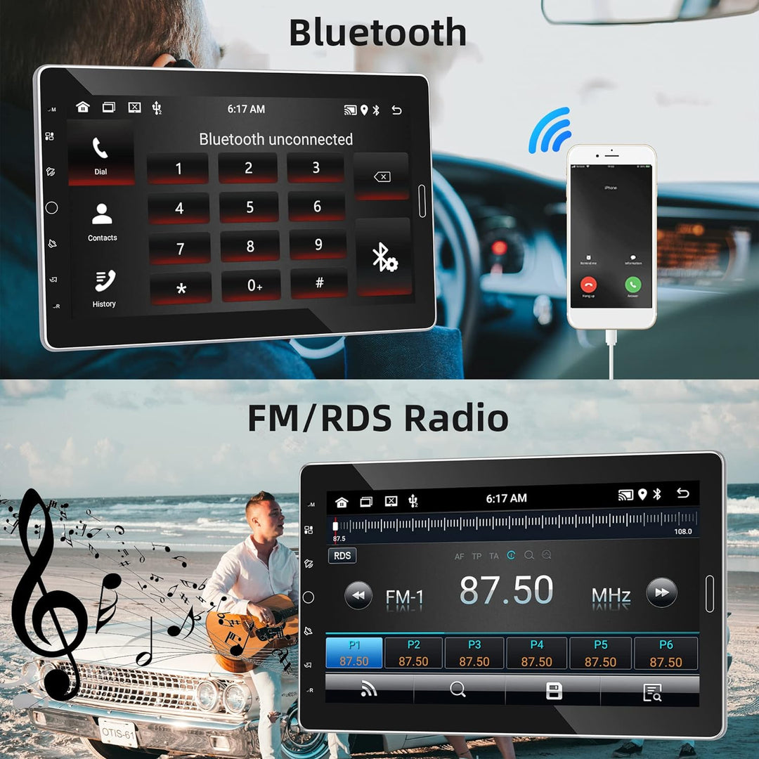- 4️⃣【Bluetooth & FM/RDS Radio】1 Din Android Autoradio mit Bluetooth, Autoradio mit integriertem Mikrofon und Lautsprecher, kann Freisprechanrufe tätigen und Bluetooth-Verbindung zum Mobiltelefon zum Abspielen von Musik. Unterstützen FM / RDS-Radiotuner, hochwertiges Stereo, das manuell oder automatisch nach dem gewünschten Kanal suchen kann. 18 voreingestellte Radiosender. Sendern können Sie Echtzeitverkehr, Nachrichtensendungen, Wettervorhersagen usw.