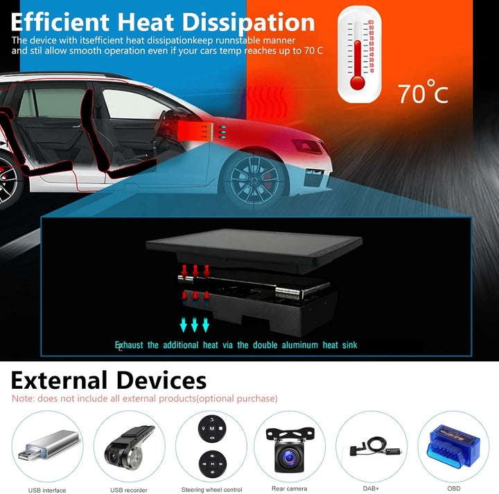 - 【Auto-Multimedia-Player】 Android-Autoradio unterstützt 2 USB-Eingänge, unterstützt Dash-CAM-Eingang, unterstützt DAB+- und OBD-Verbindung, einstellbare EQ-Bänder / Helligkeit / Lautstärke / Sprache. Verstärker- und Subwoofer-Ausgang. 4x45W Audioausgang unterstützt 1080P-Videowiedergabe