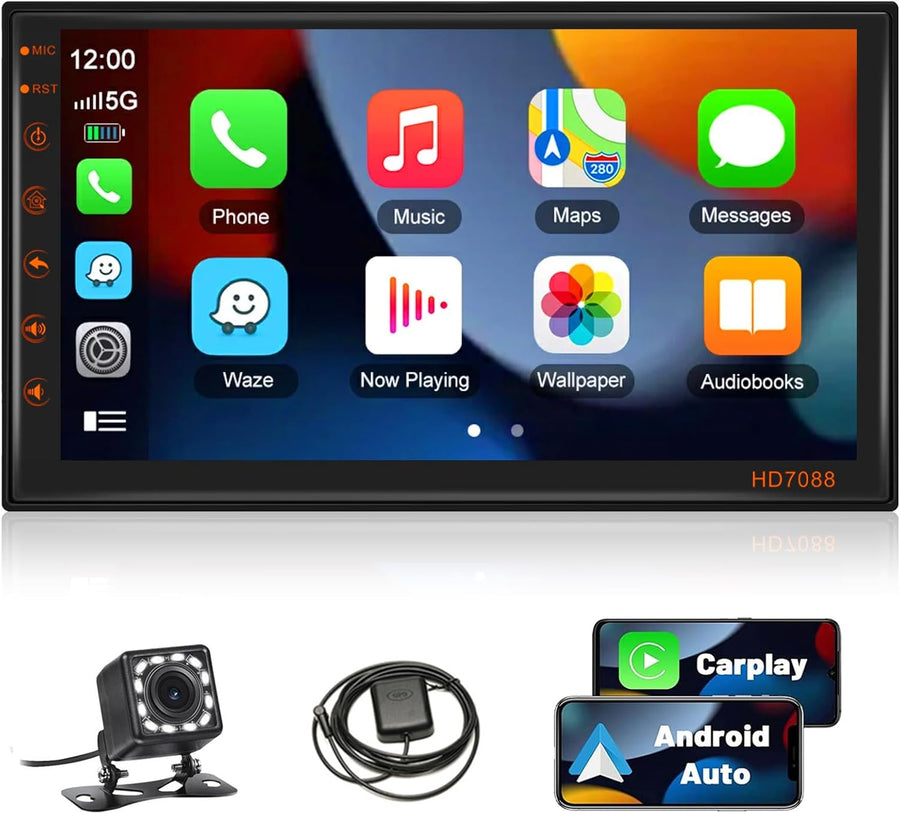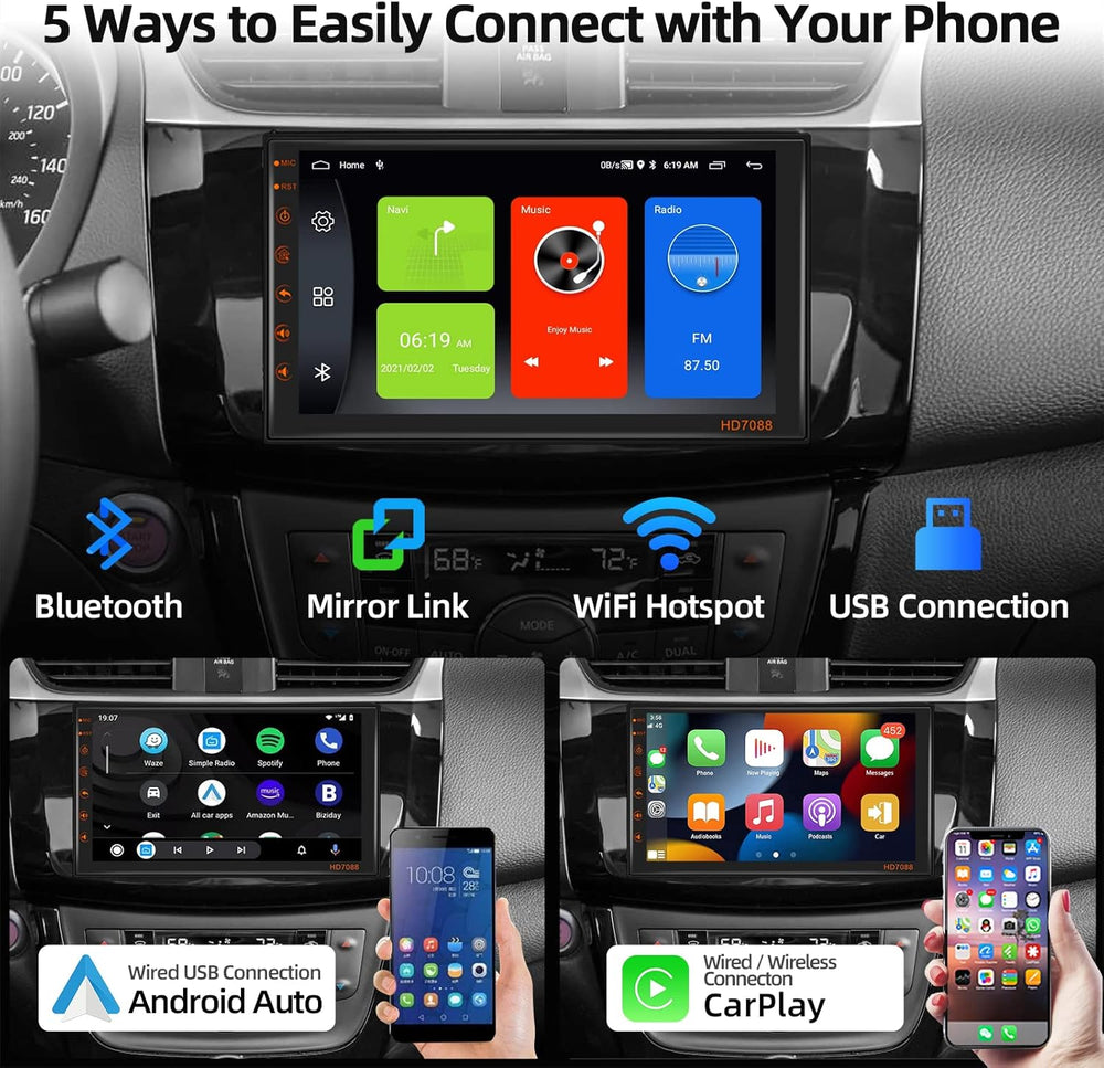- [Wireless Apple Carplay und Android Auto] - Intelligentes Autoradio mit Android-System, kompatibel mit kabelgebundenem / kabellosem Apple Carplay und einem Android Auto, verbunden mit Mobiltelefon, Sie können die Sprachsteuerung am Autoradio verwenden,