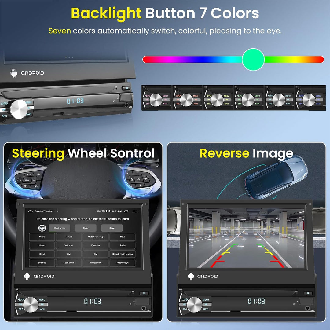 - 【Mirror Link und Lenkradsteuerungsfunktion】 Das ausklappbare 7-Zoll-Touchscreen-Radio unterstützt Mirror Link über USB-Kabel. Unterstützt Mirror Link für iPhone 5-8series (IOS 13.4 und niedriger) und Android-Telefone (Version 10.1 und niedriger). Ausserdem unterstützt das Autoradio die Lernfunktion der Original-Lenkradtasten, mit der Sie die Funktionen, die Sie benötigen, bequemer am Lenkrad steuern können.