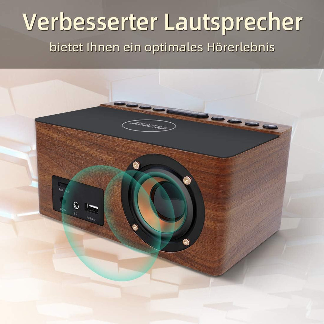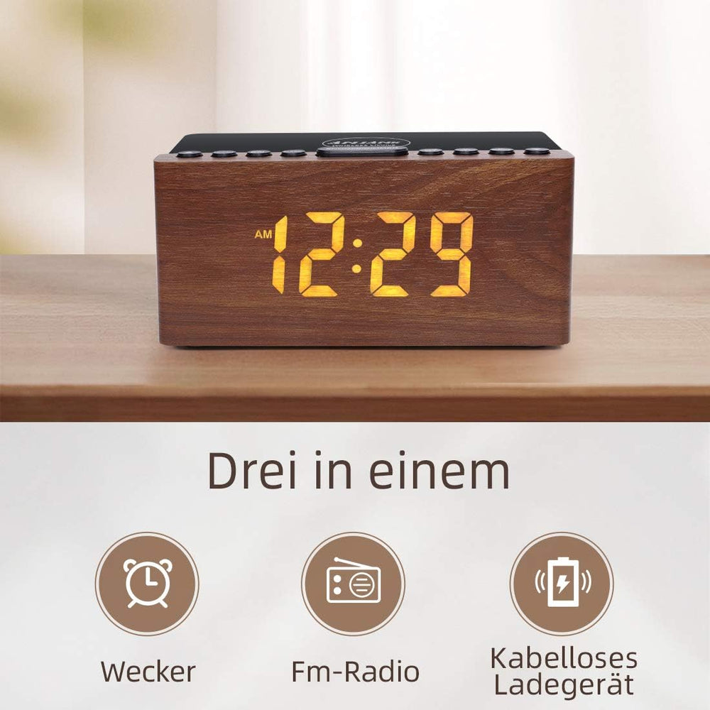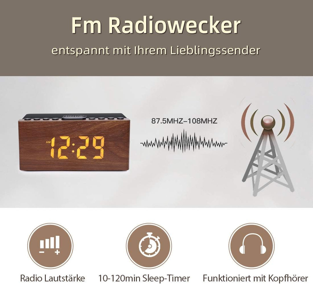 - 【FM-RADIO & SLEEP-TIMER】Edler Radiowecker aus Holz mit einem Frequenzbereich von 87,5-108MHz. Damit können Sie ganz einfach Ihre Lieblingsradiosender einstellen und speichern. Mit einem Premium-Lautsprecher mit regelbarer Lautstärke können Sie einen klaren und unverfälschten Klang geniessen. Es gibt auch einen Sleep-Timer von 10 bis 120 Min. Eine praktische Zusatzfunktion.