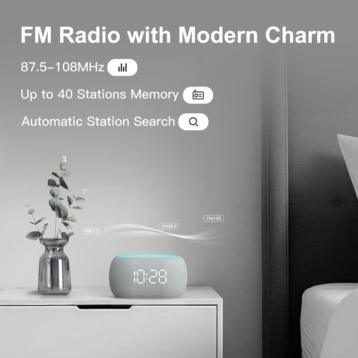 - Bluetooth 5.0 & Hi-Fi-Stereo-Sound: Ausgestattet mit Bluetooth 5.0 und 10W-Doppellautsprechern, bietet es kraftvolle Bässe und klare Höhen. Die Bluetooth-Verbindung stellt die Zeit automatisch ein und bleibt auch während der Sommerzeit präzise.