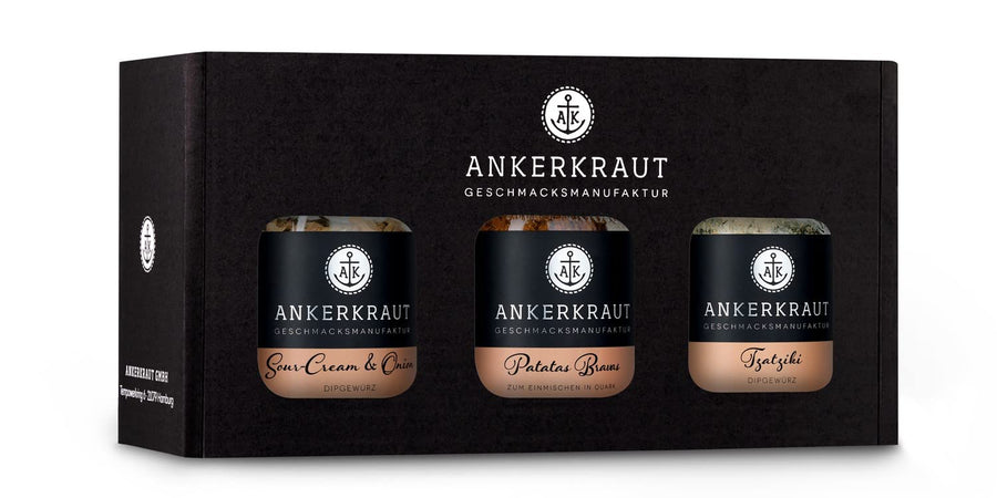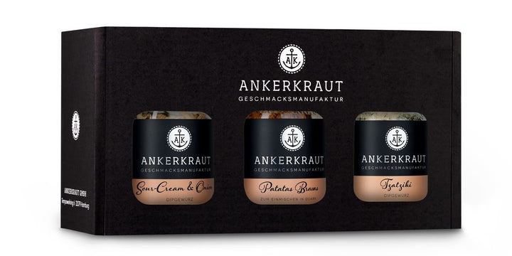 • [3er SET] Dip it low... mit unserer Ankerkraut Box mit dreierlei Gewürzen für Dips! Egal ob selbstgepimpte Mayonnaise für Patatas Bravas, eine schnelle Sour Cream oder Tzatziki wie vom Griechen - Mit diesen Dips bist du für jeden spontanen