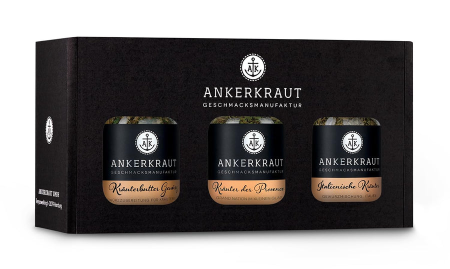 - [3er SET] Dieser bunte Kräutergarten sollte in keiner Küche fehlen! In der Ankerkraut Box "Kräuter" bekommst du den perfekten Gewürz-Mix: Unser Kräuterbutter Gewürz, Italienische Kräuter und Kräuter der Provinz im Korkenglas. Diese perfekte