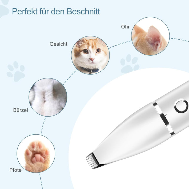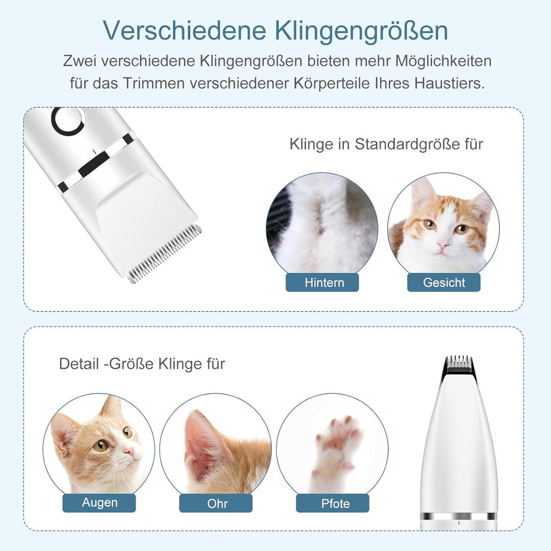 - 🐱🐶【2 IN 1 PROFESSIONELLER HAUSTIERSCHER】: Der breite Kopf ist für die Teilrasur geeignet und kann auch mit einem peripheren Kamm verwendet werden, während der schmale Kopf für das Trimmen der Haare unter den Füssen konzipiert ist. Die