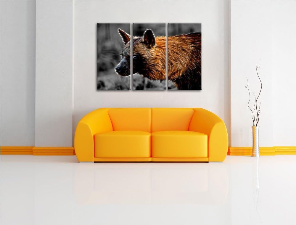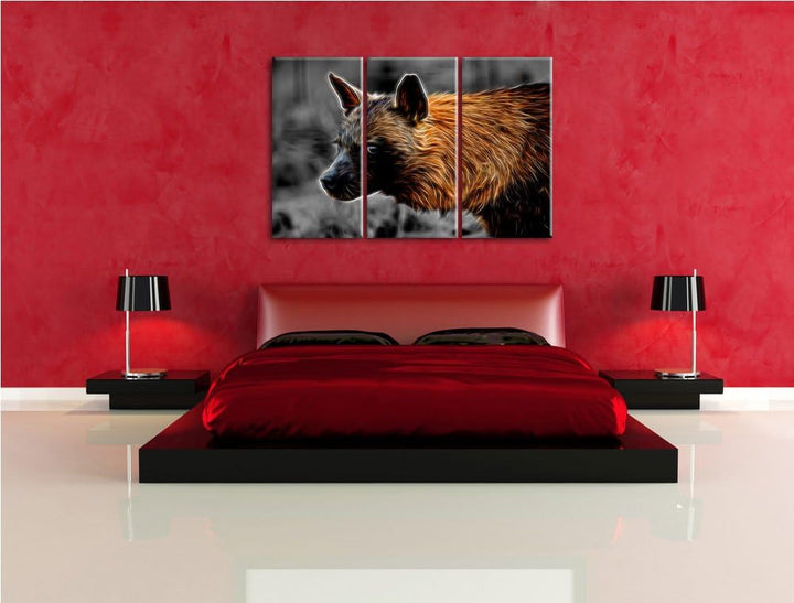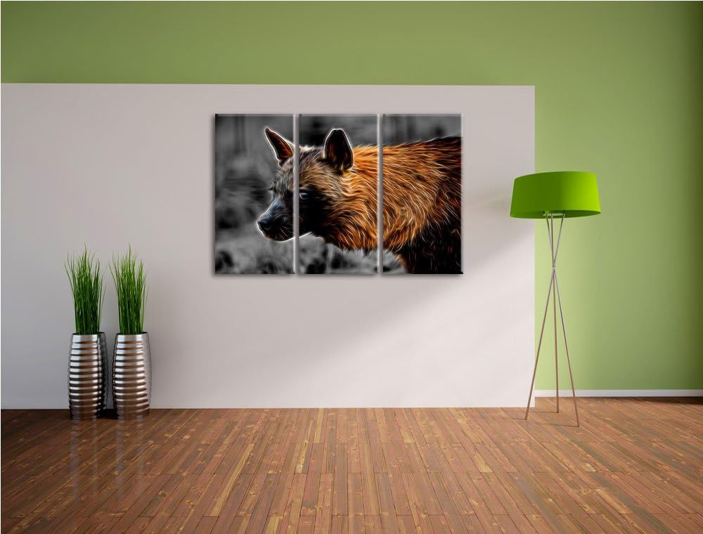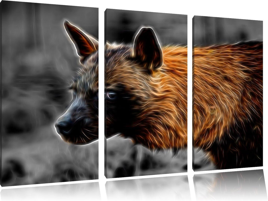 anmutige Hyäne im Wildgras schwarz/weiss Deluxe 3-Teiler Leinwandbild 120x80 Bild auf Leinwand, XXL