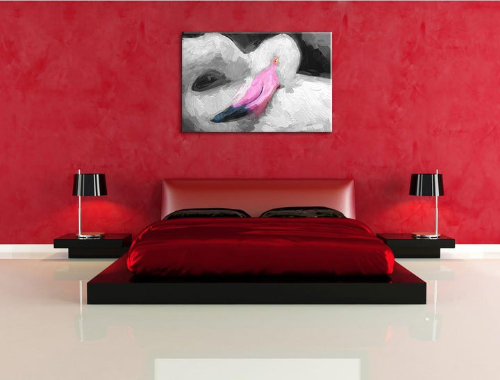 anmutiger Flamingo schwarz/weiss Deluxe Format: 100x70 cm auf Leinwand, XXL riesige Bilder fertig ge