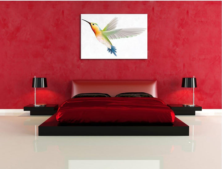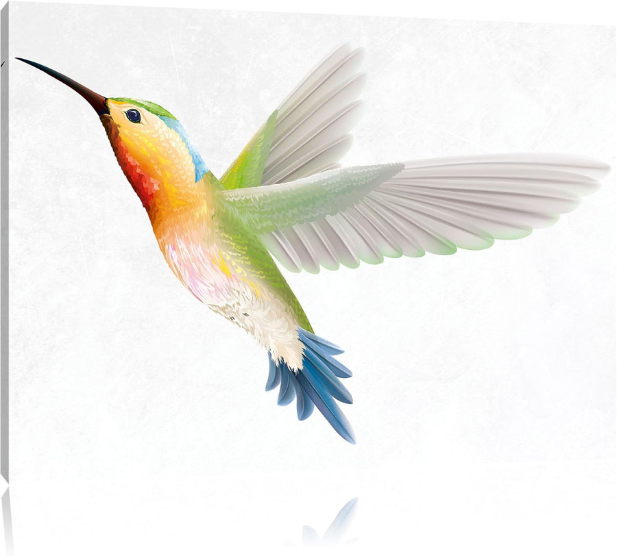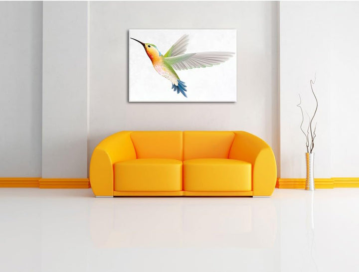 Anmutiger Kolibri weiss, Format: 100x70 auf Leinwand, XXL riesige Bilder fertig gerahmt mit Keilrahm